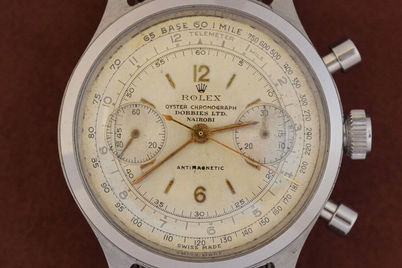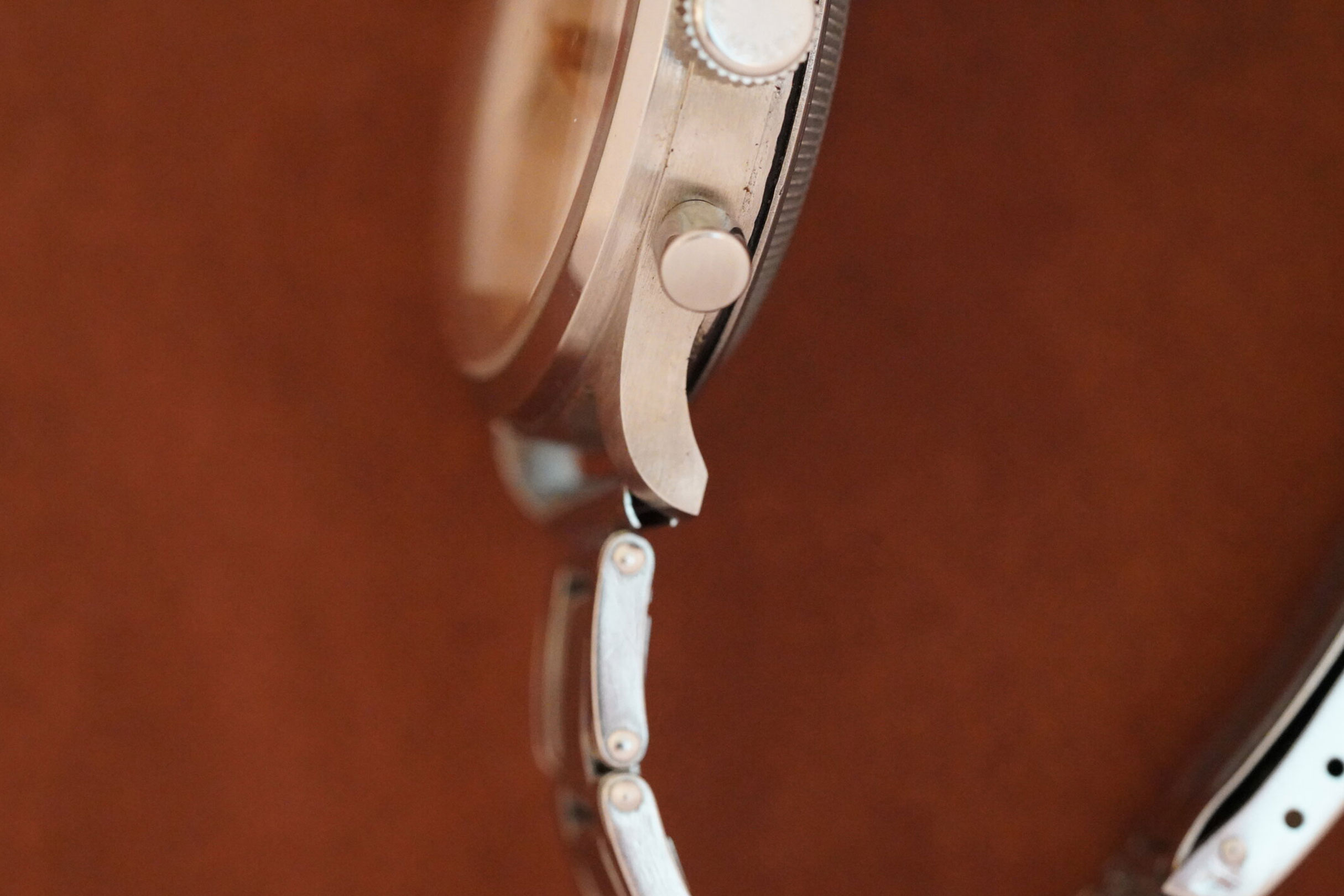 Like the Tudor, I had the pleasure of inspecting this example in the metal last week, and it doesn't disappoint in the slightest. Despite its age, all the scales and markings on its patinated dial are perfectly legible, and the case remains thick. Even if the watch didn't enjoy such important provenance and a seldom seen retailer signature, it would definitely be a sought after example and one that any serious collector would be proud to own. The proverbial icing on the cake is the period-correct Gay Frères bracelet which has been fitted, tying the whole piece together nicely.