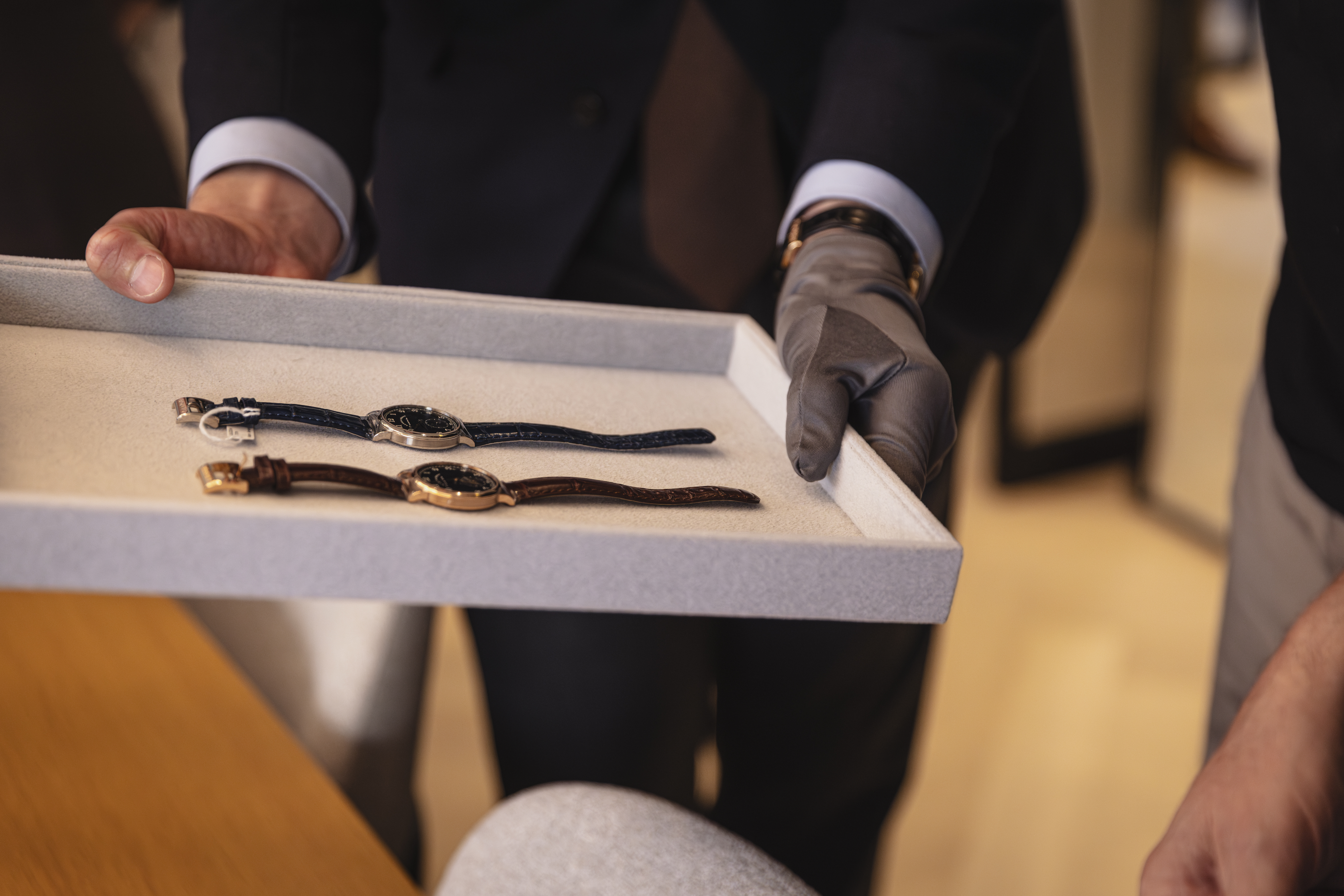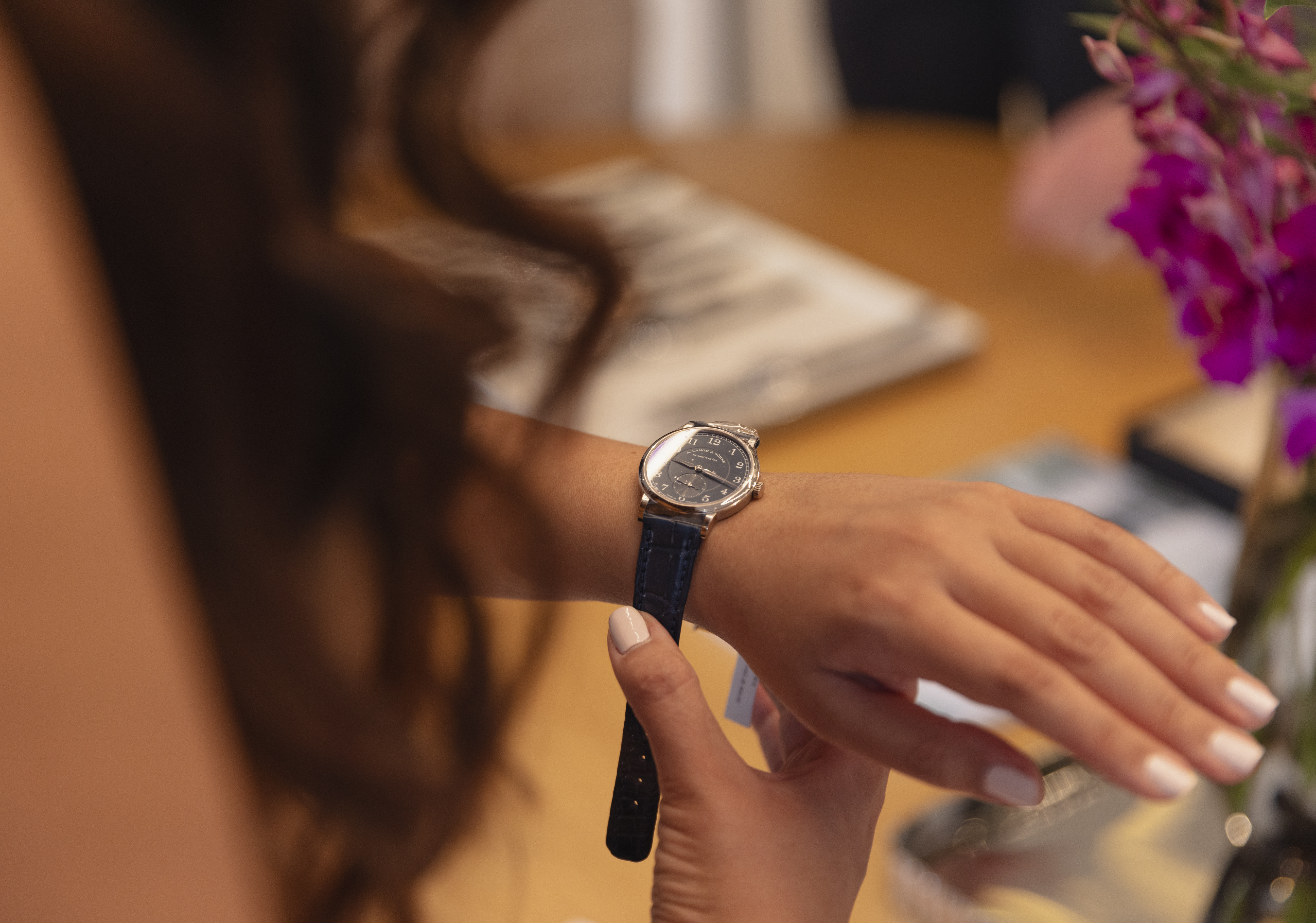 After arriving at A. Lange & Söhne's San Francisco Salon, which opened last year on Geary Street in the heart of Union Square, guests enjoyed passed hors d'oeuvres along with top-shelf wines and spirits while admiring the Glashütte-based watchmaker's latest creations. Every piece in A. Lange & Söhne's range of watches embodies the brand's singular blend of old-world craftsmanship and modern German precision, but guests were inevitably drawn towards the novelties unveiled recently at Watches and Wonders Geneva, which are on display for a limited time at the San Francisco Salon. Among these is the new 1815, which combines a 34mm white or pink gold case with A. Lange & Söhne's latest manufacture 75th calibre, and the Odysseus Honeygold, which is the first example of the distinctive sport watch to feature a case and bracelet made from the brand's richly-hued 18 k gold compound. Other highlights included the rare Datograph Perpetual Tourbillon Honeygold "Lumen," a spectacular horological creation featuring several high-complications and a semi-transparent luminous dial.