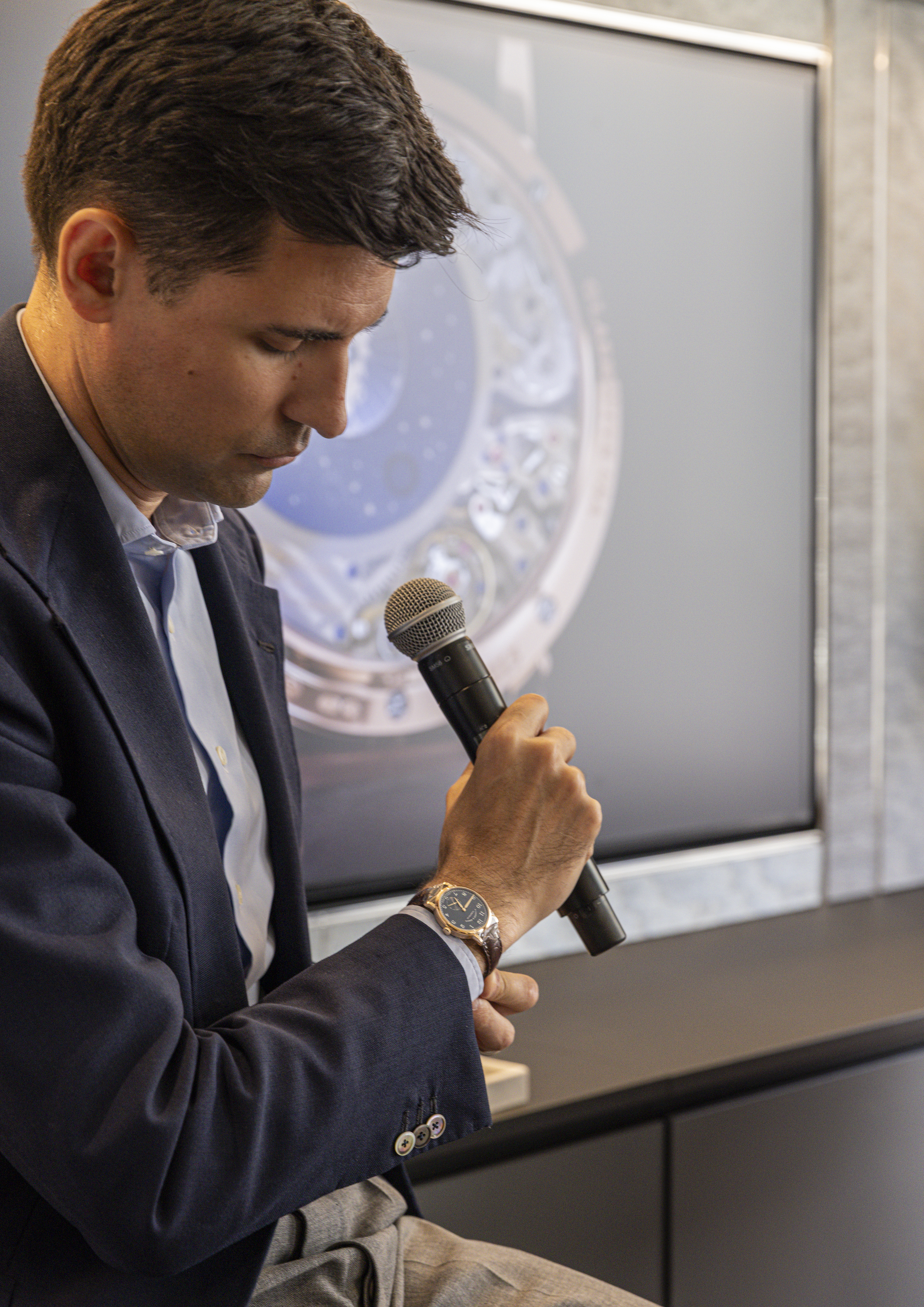 The opportunity to admire these pieces in the metal would be enough of an enticement for most watch enthusiasts, but as with every UBS House of Craft event, the experience was enhanced by a candid and informative conversation between Langlois and Kauzlarich. Seen as standing shoulder to shoulder with top Swiss watch brands, A. Lange & Söhne has earned a strong global following among in-the-know collectors for over 30 years despite producing just 5,000 watches per year. As an insider with deep knowledge of the brand, Langlois provided a look behind the curtain at the brand's devotion to craft, a tradition that stretches back to the mid-19th century. From A. Lange & Söhne's signature hand-engraved components (each engraver's pattern is subtly unique) to its German silver components to its twofold assembly process (in which each movement is assembled twice to ensure it's as close to perfect as possible) there was plenty of ground to cover.