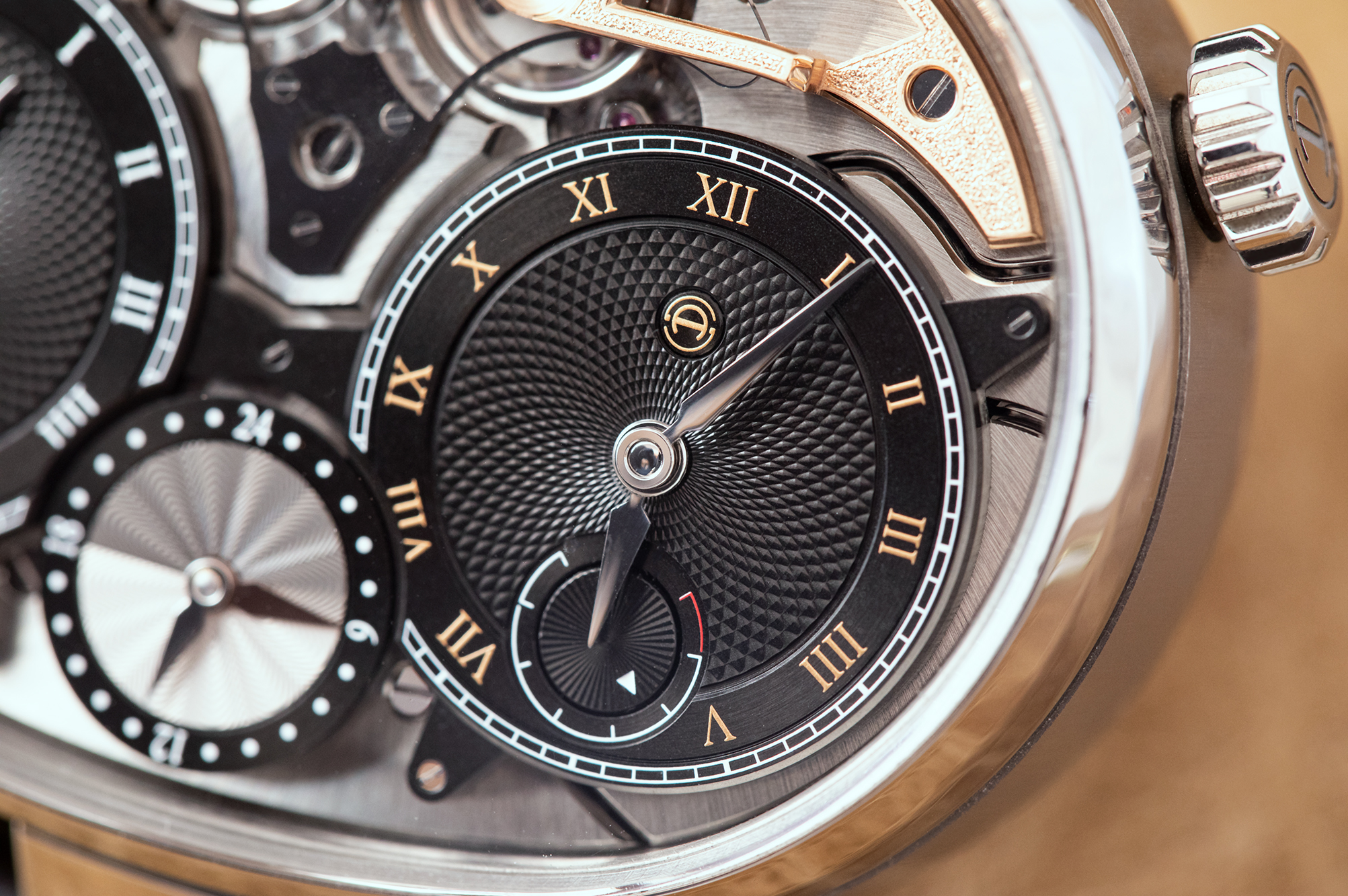 The movement, caliber ARF17, is 52.55mm x 39.95mm, and 11.67mm thick, running in 70 jewels at 25,200 vph.