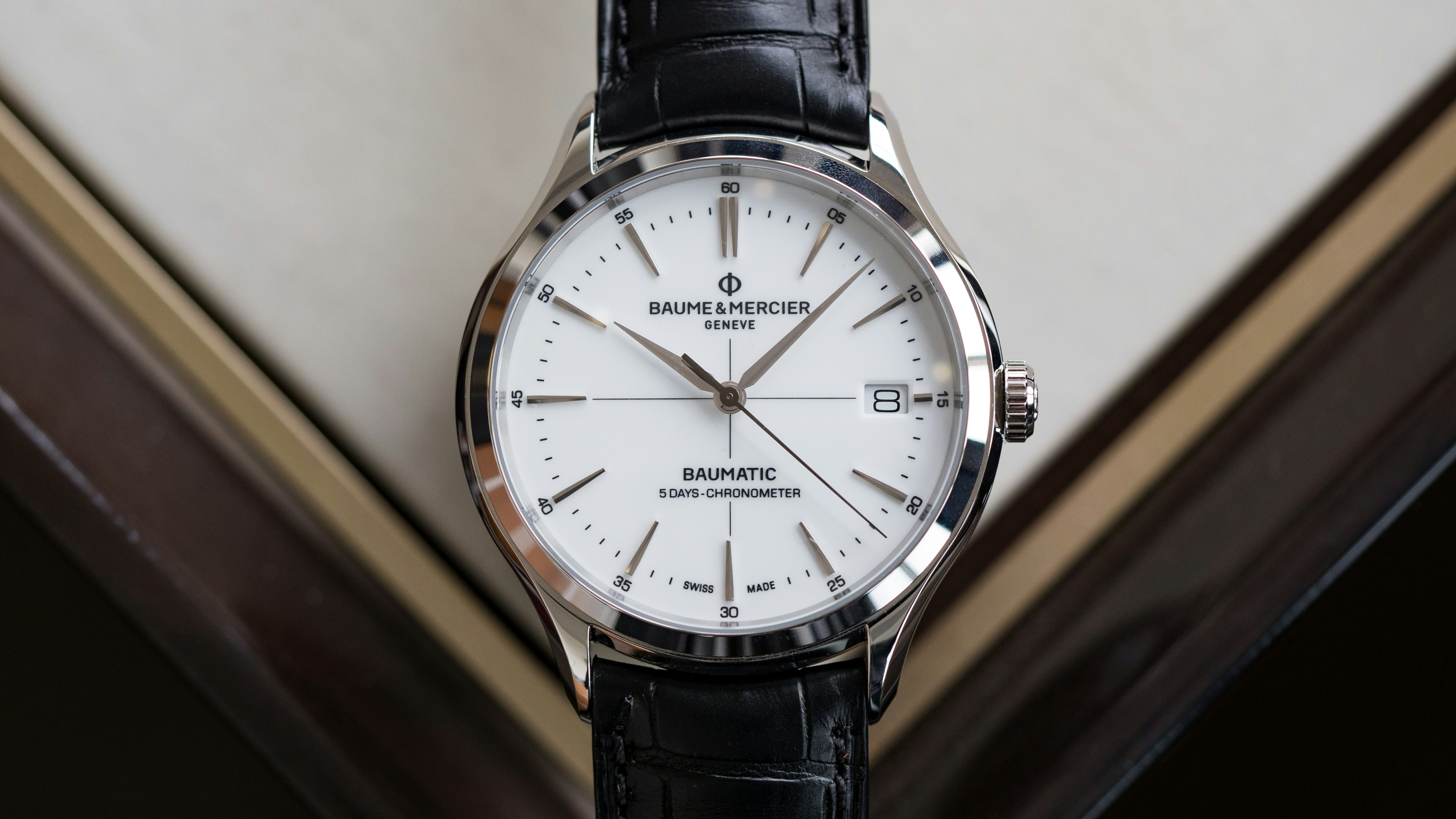 View HistoryOriginally founded in 1830 in Les Bois, Switzerland, Baume & Mercier took its current name in 1918 under the leadership of William Baume and Paul Mercier in Geneva. Now a member of the Richemont group, the manufacture is known for its Clifton, Classima, Capeland, and Hampton lines, most of which fall into the mid-range price category.