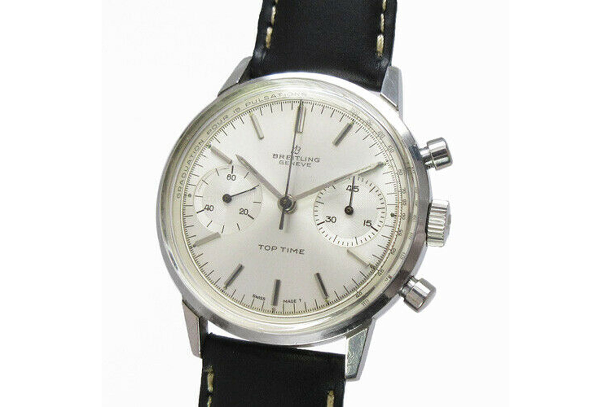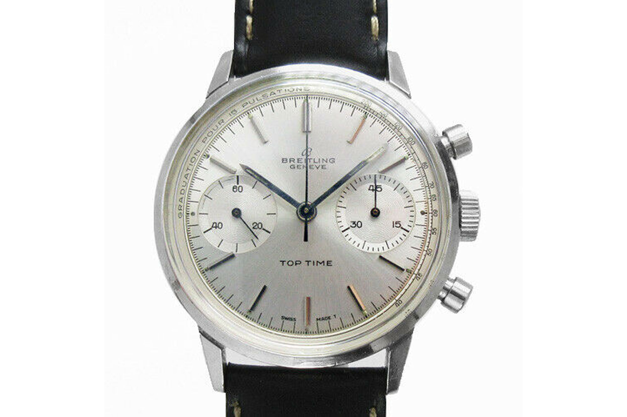 Nope, this isn't a Heuer, nor is it a Rolex – we're talking about a Breitling to kick things off today. You're looking at a Ref. 2002 Top Time, but no ordinary one as you'll quickly learn, unless your savant-like ways have already tipped you off to this one's special something. Though the dial is rather demure with a standard, sunburst silver finish, it has an ace up its sleeve, or rather a pulsations scale around its minute track, which adds a great deal of intrigue to an otherwise subtle watch. Considering other instances in which I've found similarly configured dials, I'd wager that this piece was originally ordered by a medical professional back in the day.