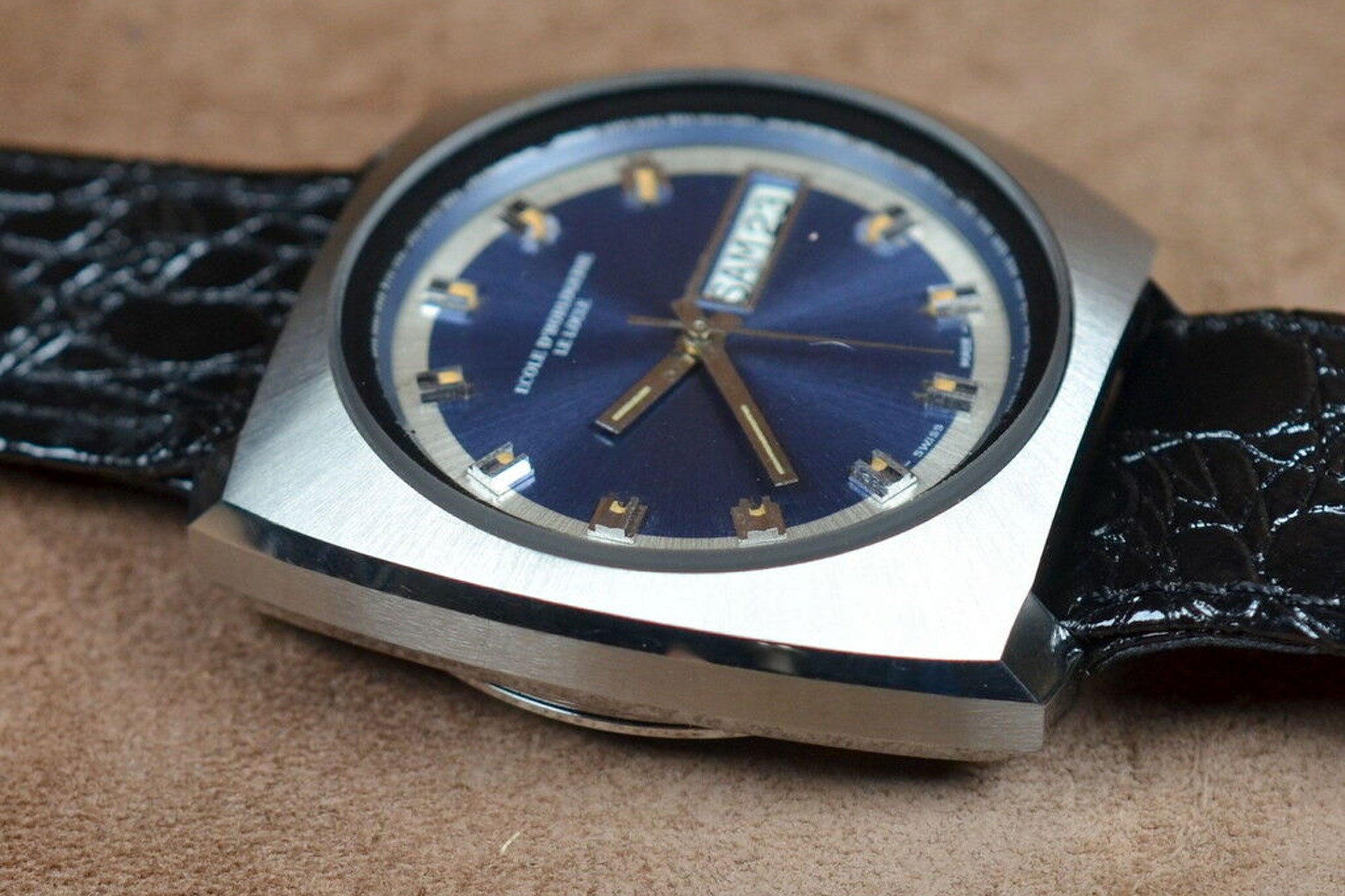 It is for this very reason why we have watches like this piece. You see, a great many watchmaking programs throughout the past half century have required their students to produce a timepiece upon completion of their studies. As a result, each watch is a direct reflection of the time in which it was crafted, along with the student watchmaker credited with its crafting, creating an altogether unique sort of wristwatch. In the case of the watch in question, there's a strong '70s vibe emanating from the funky shape of the case and sunburst dial, which honestly raises a lot of questions about the environment of watchmaking schools during this time.