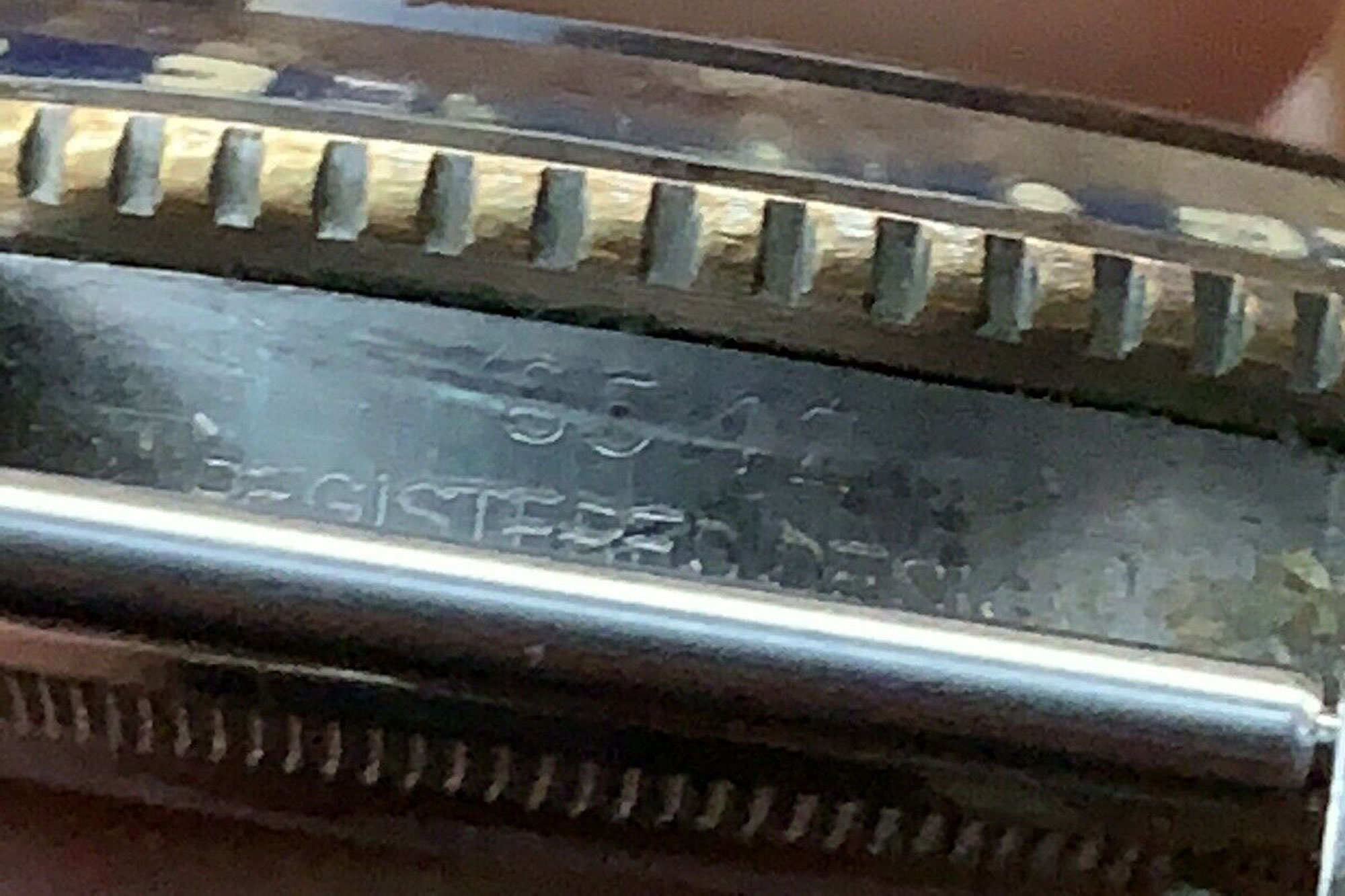 The Ref. 6542 made a splash with its red and blue bakelite bezel, which is of course now referred to as the "Pepsi" configuration, though perhaps more reminiscent of Pan Am at the time of its release. Being a brittle material, few bakelite bezels from the Ref. 6542 have survived the years totally unscathed, or free from the effects of radioactive substances. That makes this perfect example a little questionable, and that’s because yes, the bezel is fake. This can be determined by analyzing the size and depth of the numerals, along with the luminous compound that they’ve been finished in.