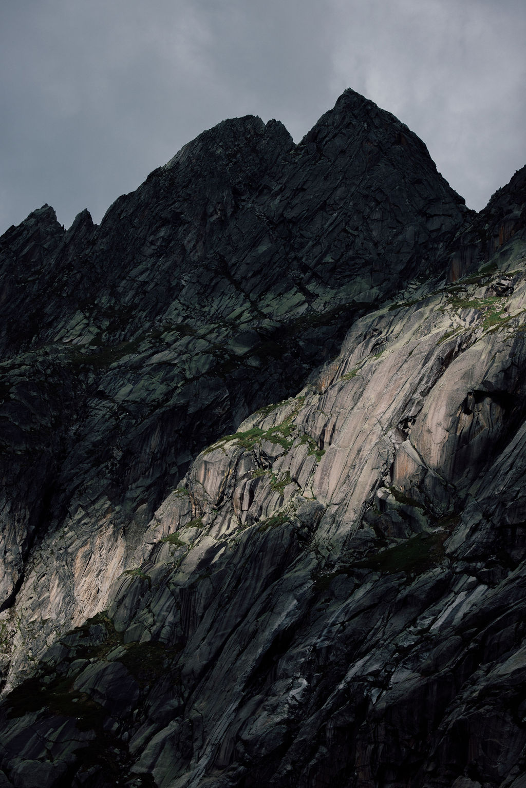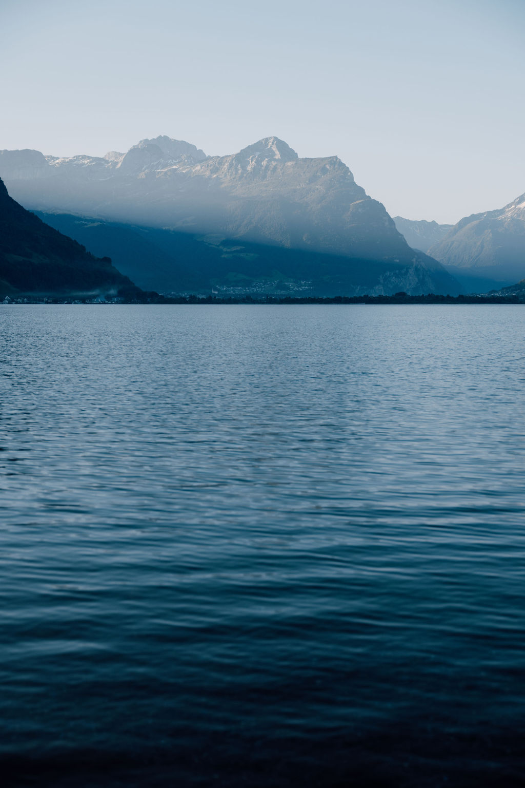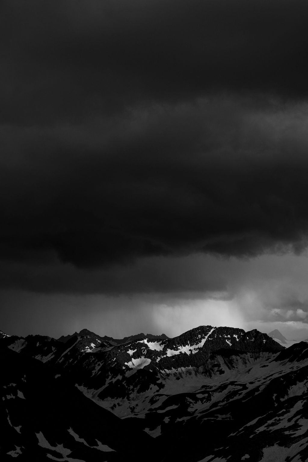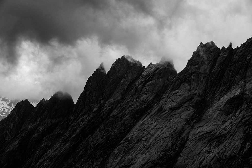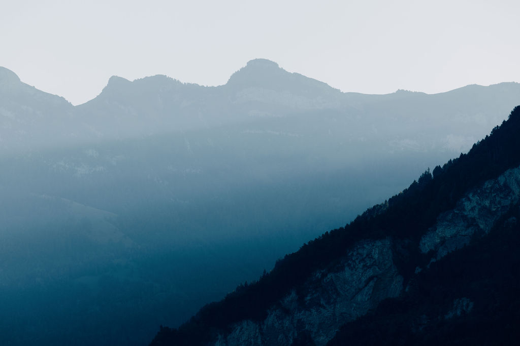 What he came back with was a series of breathtaking landscapes of Switzerland that explore this abstract notion of "Swissness." For each color, he photographed an iconic part of the Swiss landscape, the green of the rolling fields of the Emmental, the deep red of the impressive mountain range of the Berner Oberland before dusk, the changing shades of blue of Lake Lucerne (Vierwaldstättersee), the black and dramatic rock surface of the Grimsel region, and the eternal whiteness of the Aletsch glacier.