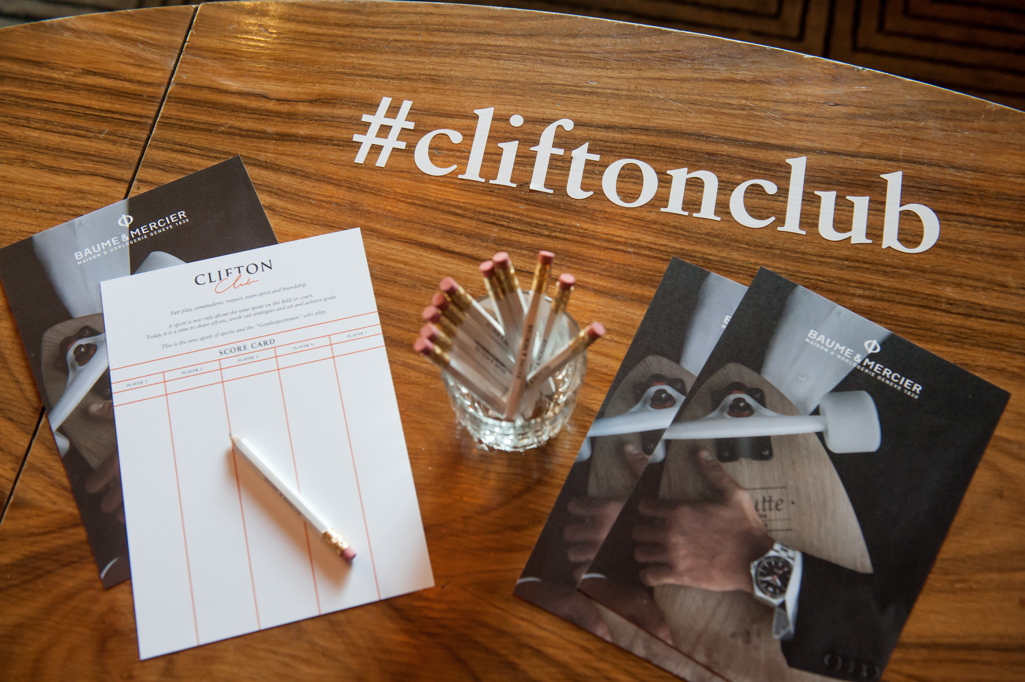 On Wednesday evening, a group of collectors and enthusiasts gathered at The Spare Room at The Roosevelt Hotel in Hollywood, where everyone enjoyed cocktails over board games and bowling. We were joined by a few special guests of Baume & Mercier, including Race Imboden, an Olympic fencer, and brothers David and Lorenzo Henrie, who are both actors, producers, and directors. David even celebrated his birthday with everyone, with a Clifton Club cake, of course.