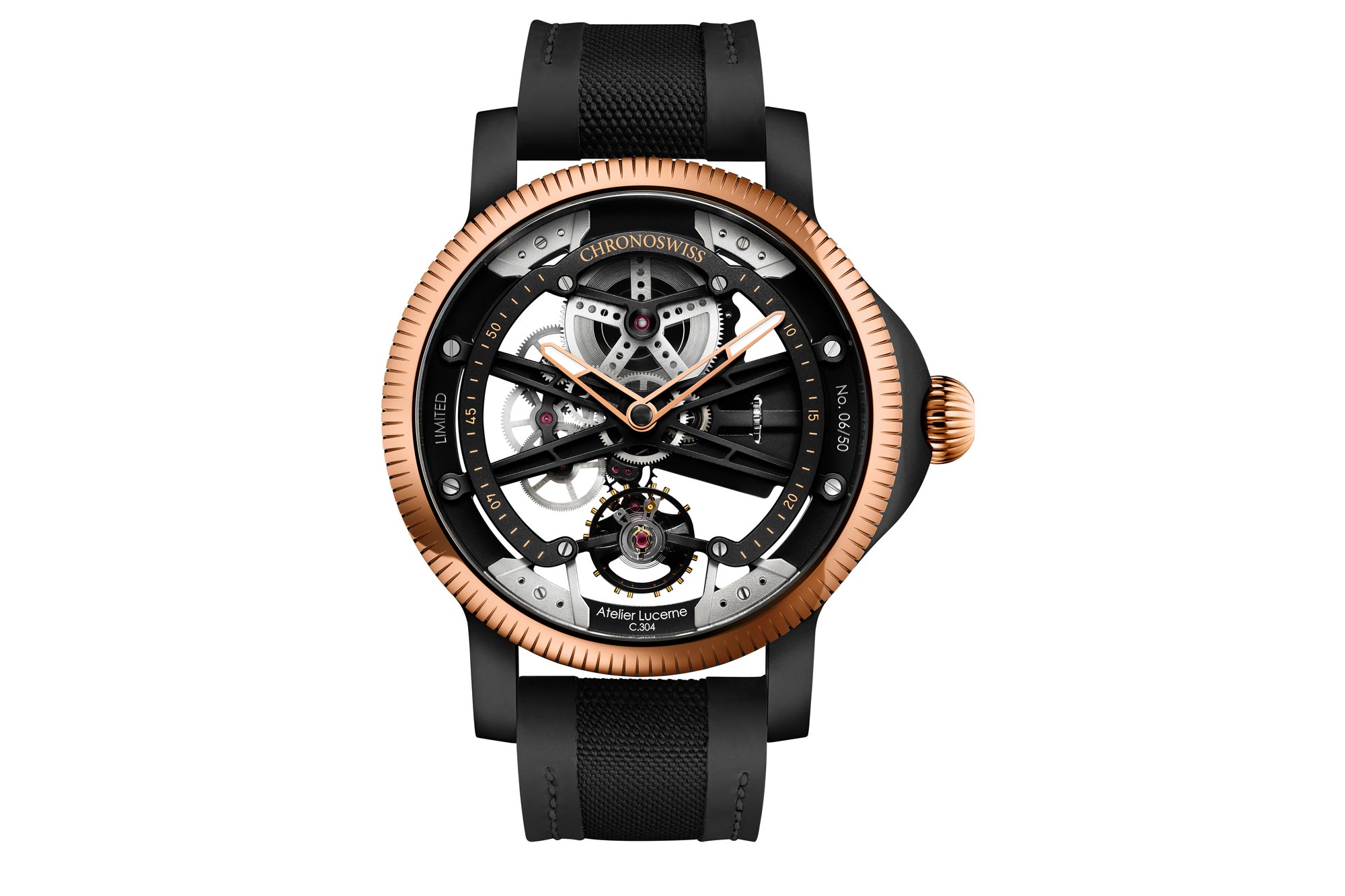 But the SkelTec still retains the design elements consistent among all Chronoswiss models that create a fascinating tension between the horological future and the distant past. The onion crown is still present, along with the signature Chronoswiss case shape and coin-edge bezel.