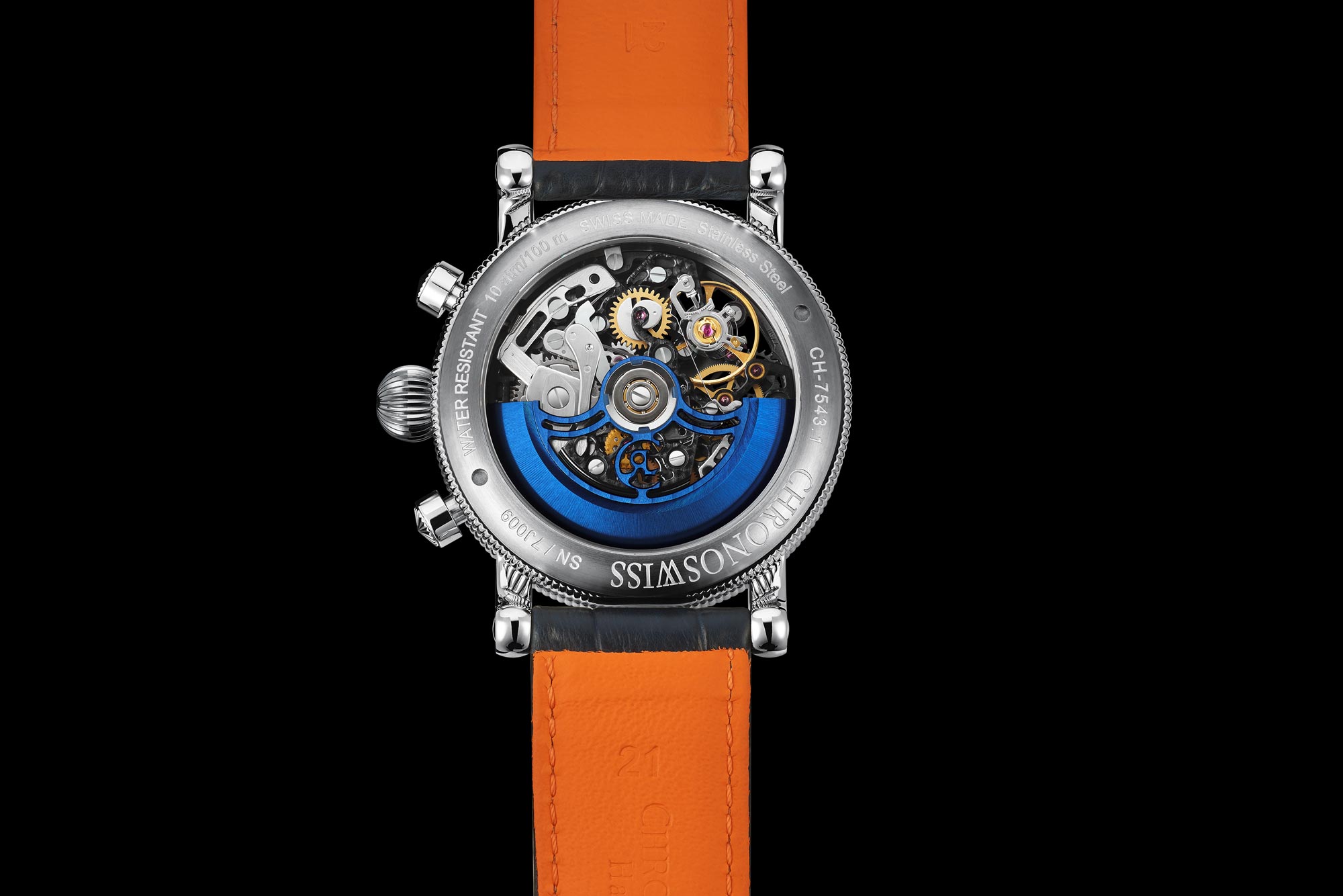 Price: CH-3714-BK (Stainless steel/DLC): $17,700; CH-3715R-BK (Red gold/stainless steel/DLC): $20,900; CH-7543.1S-BLOR (Stainless steel, blue and orange dial, skeletonized): $11,800; CH-7543.1S-SiSI (Stainless steel, silver dial, skeletonized) $11,400