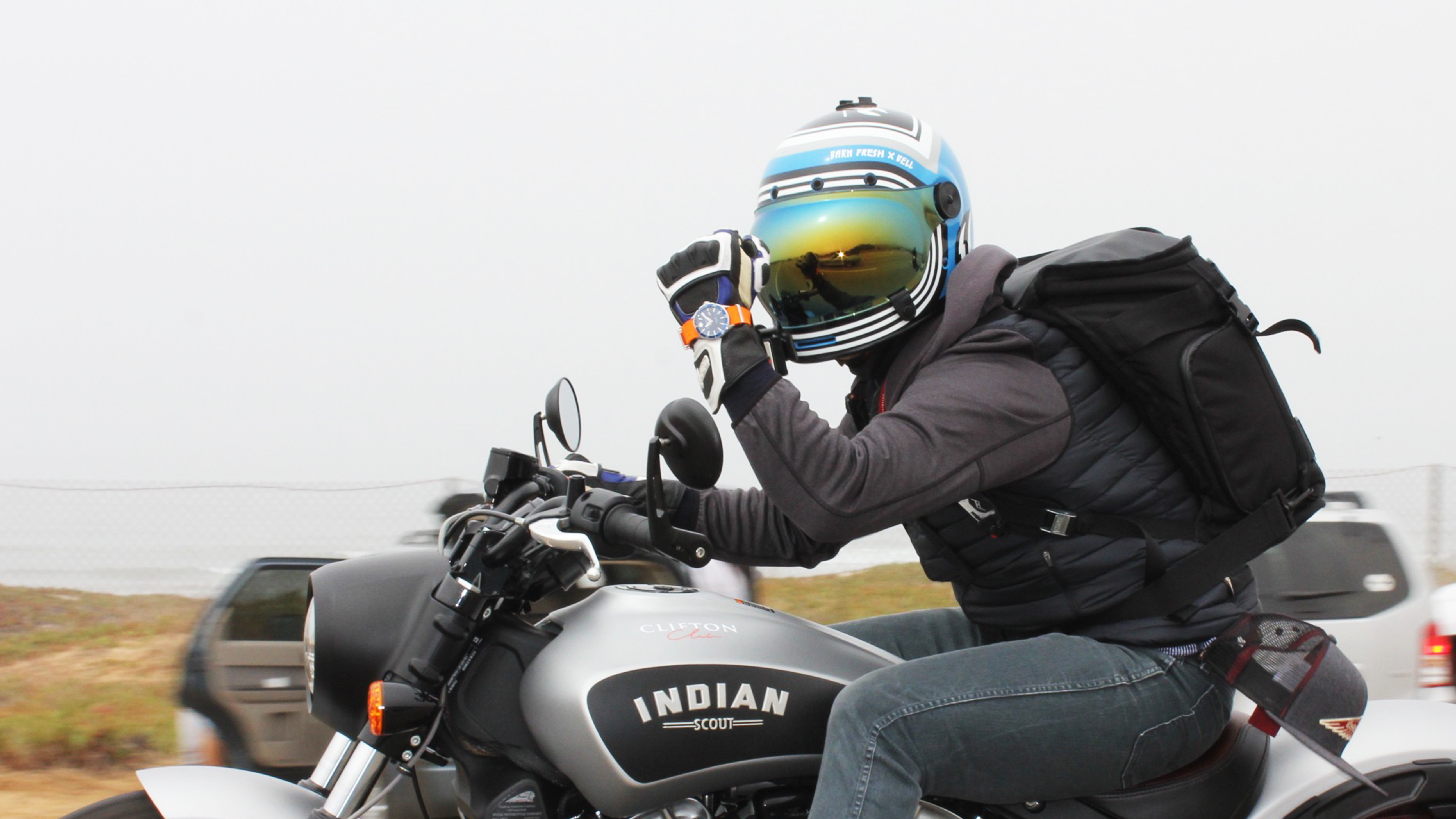 The watch's case back features the Indian motorcycle logo.