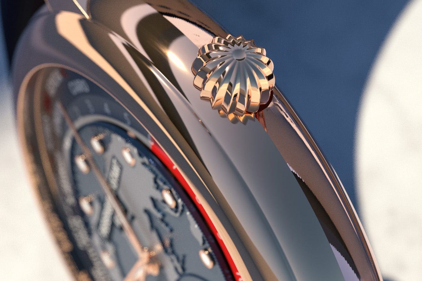 This is the first time this watch has been offered in a precious metal, and it features a blue dial with red and white accents, a 24-hour day-night disc, city disc, and date sub-dial. As with previous models, the watch's world-time complication, and all functionality, are operated via the crown. The watch is limited to 88 pieces.