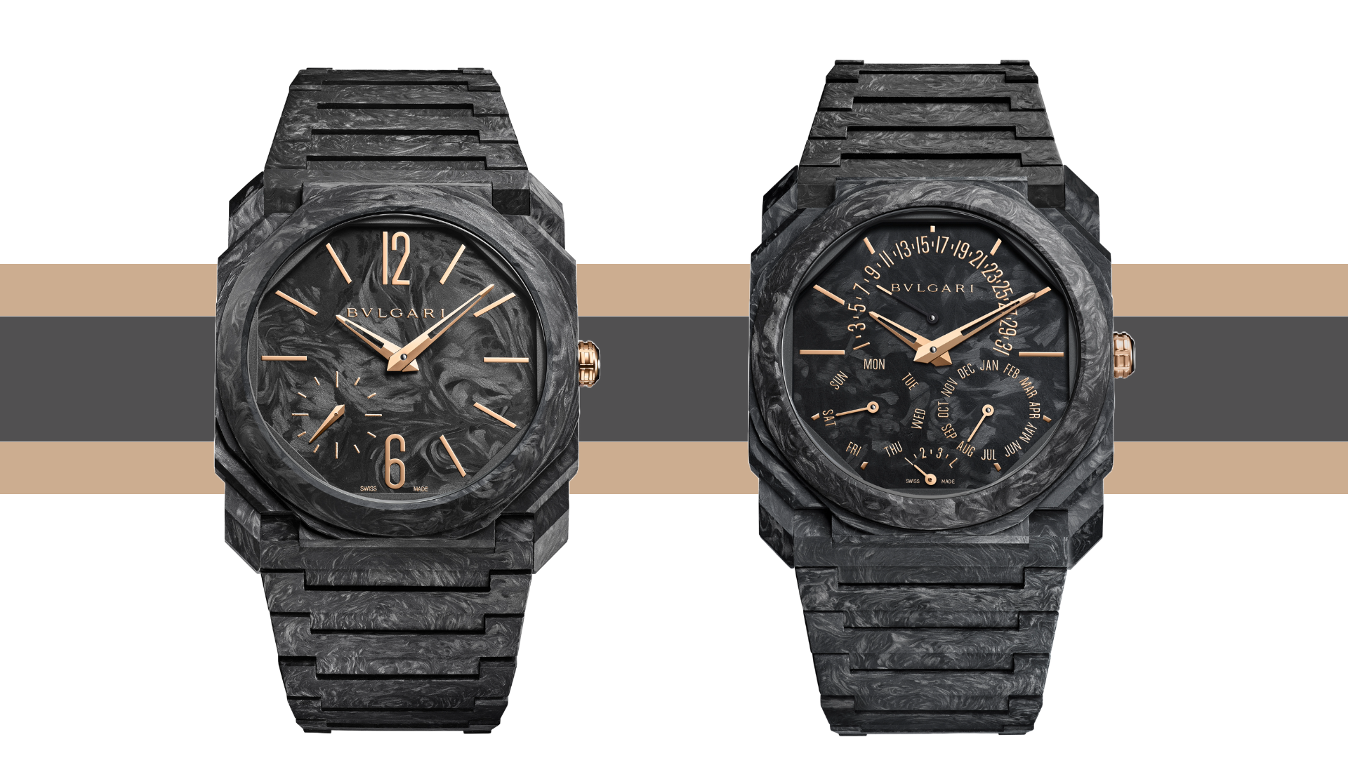 What sets the Laureato Absolute Chronograph 8Tech apart is that last word – 8Tech. The process allows for an entirely different look for the carbon composite case. Take the chunky or flake-laden look of the case for the Laureato Absolute Chronograph Aston Martin F1 (below, left), and you'll see the distinction.