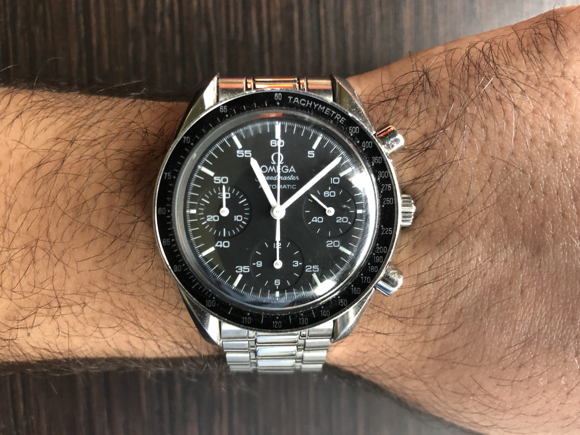 Shyam received this Omega Speedmaster Reduced from his father when he started medical school at the Mayo Clinic in Rochester, MN. Now entering his final year there, he wears the watch daily in the hospital, and he says its presence on his wrist has sparked many conversations with watch-loving patients.