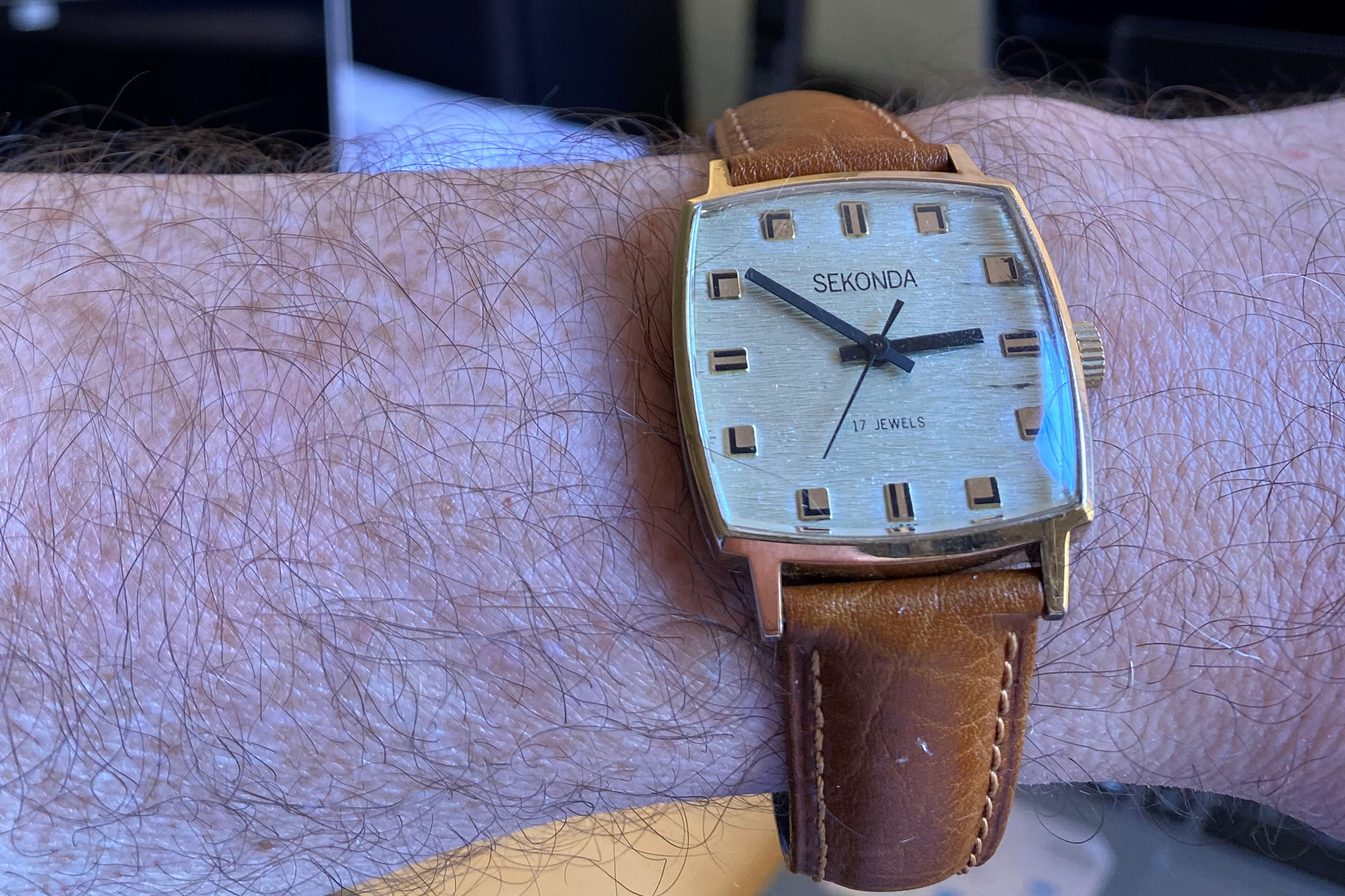 Paul is an author who lives in Cookham, England, just west of London. This Sekonda had been a gift from his father in the 1970s, but at the time, he didn't think much of it and never wore it. Two years ago, he rediscovered it in a drawer – and was amazed that it started running when he wound it, some 40 years later. Along with bringing back a lot of memories, it also set him off on his watch collecting journey.