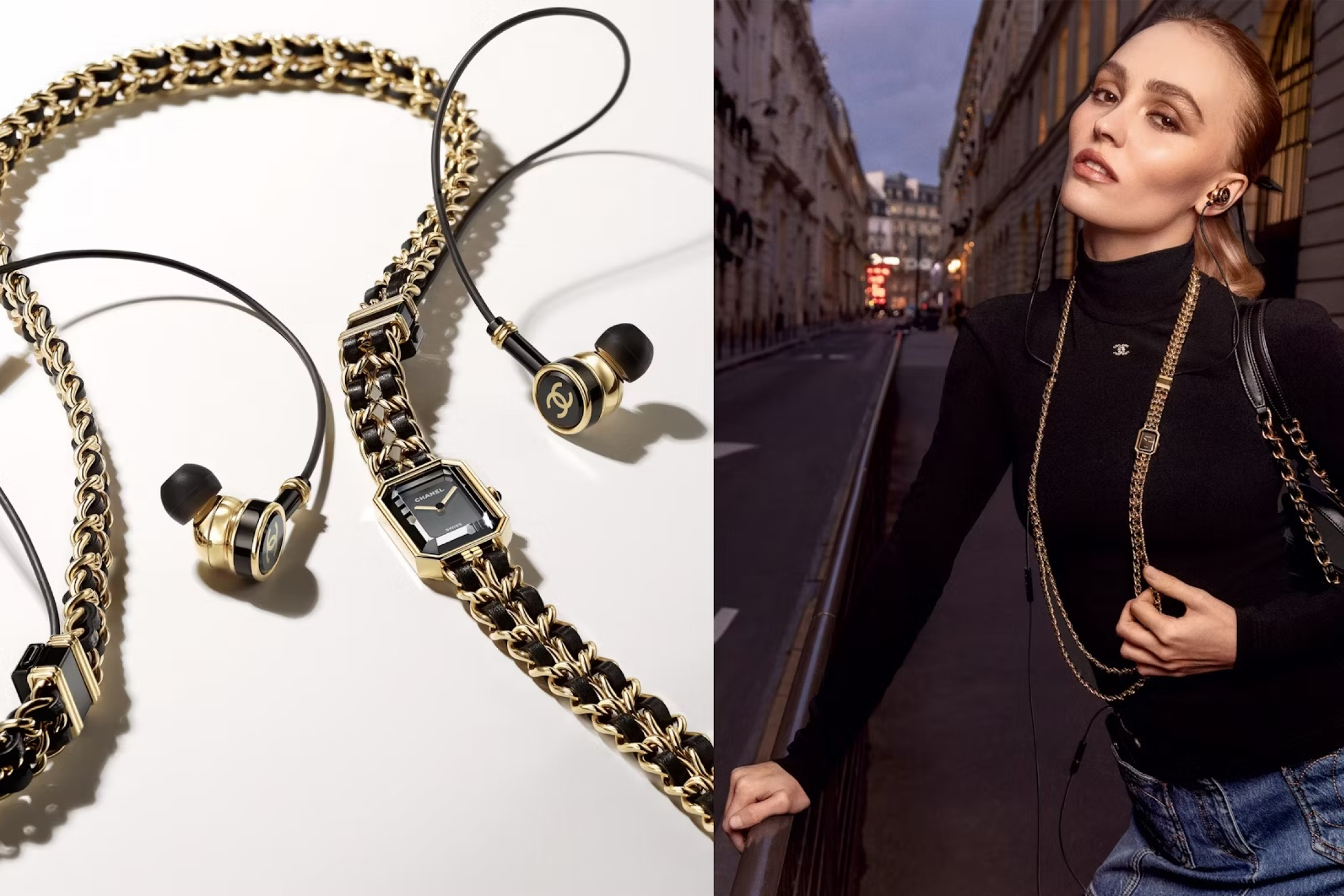 Chanel watches are never stuck on nostalgia; in fact, Arnaud Chastaingt, director of the Chanel watchmaking studio, has a clear knack for pushing watch design forward. Headphones attached to a watch that comes on a necklace sound like a lot of tricks, but they are innovative and tongue-in-cheek and work for the Chanel customer. This watch/necklace/tech object has kept the traditional Premiere design intact and added audio with Master & Dynamic headphones that can connect to a smartphone (iPhone or Android) or any audio device. While the earphone wires loop into the necklace and are removable if you wish to revert back to a simple sautoir without the sound.