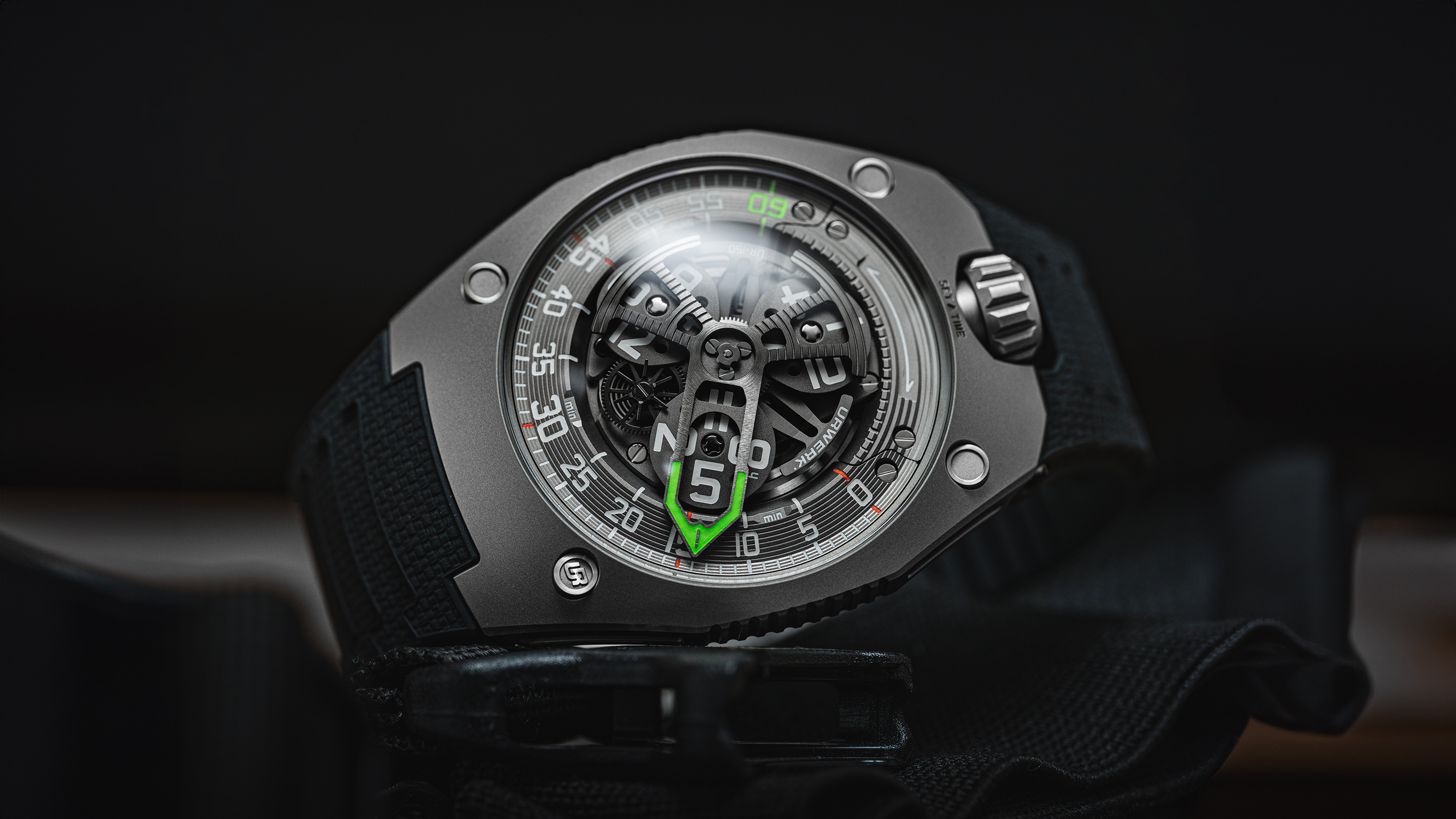 Rexhep Rexhepi Chronomètre Contemporain and Urwerk co-founder Thomas Baumgartner's personal prototype Urwerk, worn by Mike Tay.