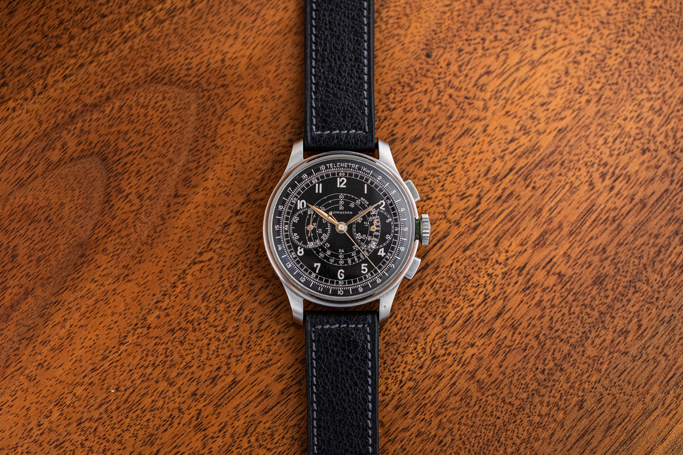 Longines had a moment a few years ago, but it seems like the average person in the vintage world has largely moved on. So you might be surprised that in a small community of collectors, the love of Longines never died. Chronographs with the legendary 13ZN movement dominate the top of collectability and command top dollar, though they usually trade privately. Our story on the movement, published in 2016, is a major part of why I'm in watches today, and I've never seen two more outstanding examples of the iconic chronograph. In addition to the fantastic movement, this oversized version with a black galvanic snail dial has everything you'd want in a vintage chronograph.
