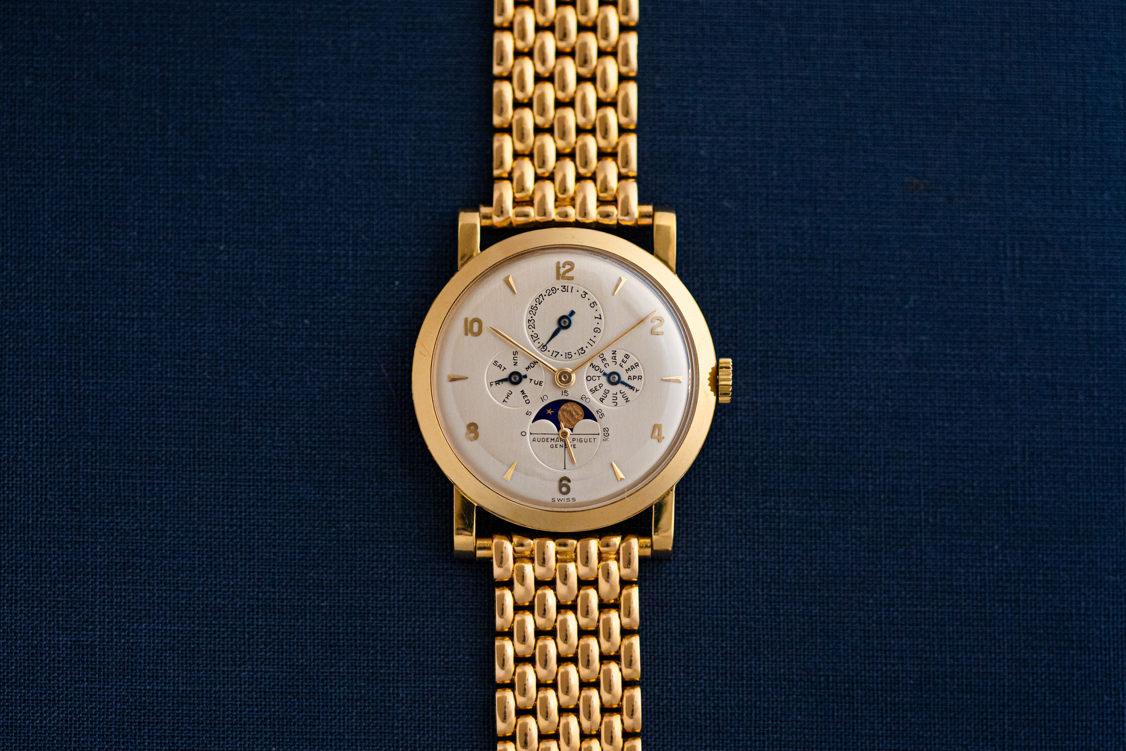 This amazing ref. 5513 (no, not that 5513 from Rolex) hasn't been seen – okay you get the picture. But it represents a specific era of Audemars that's still coveted by old-school collectors. Again, it's not a perpetual or an annual calendar; it's a "full calendar." But its a great example of the development of calendar watches for AP – something that the brand has become known for.