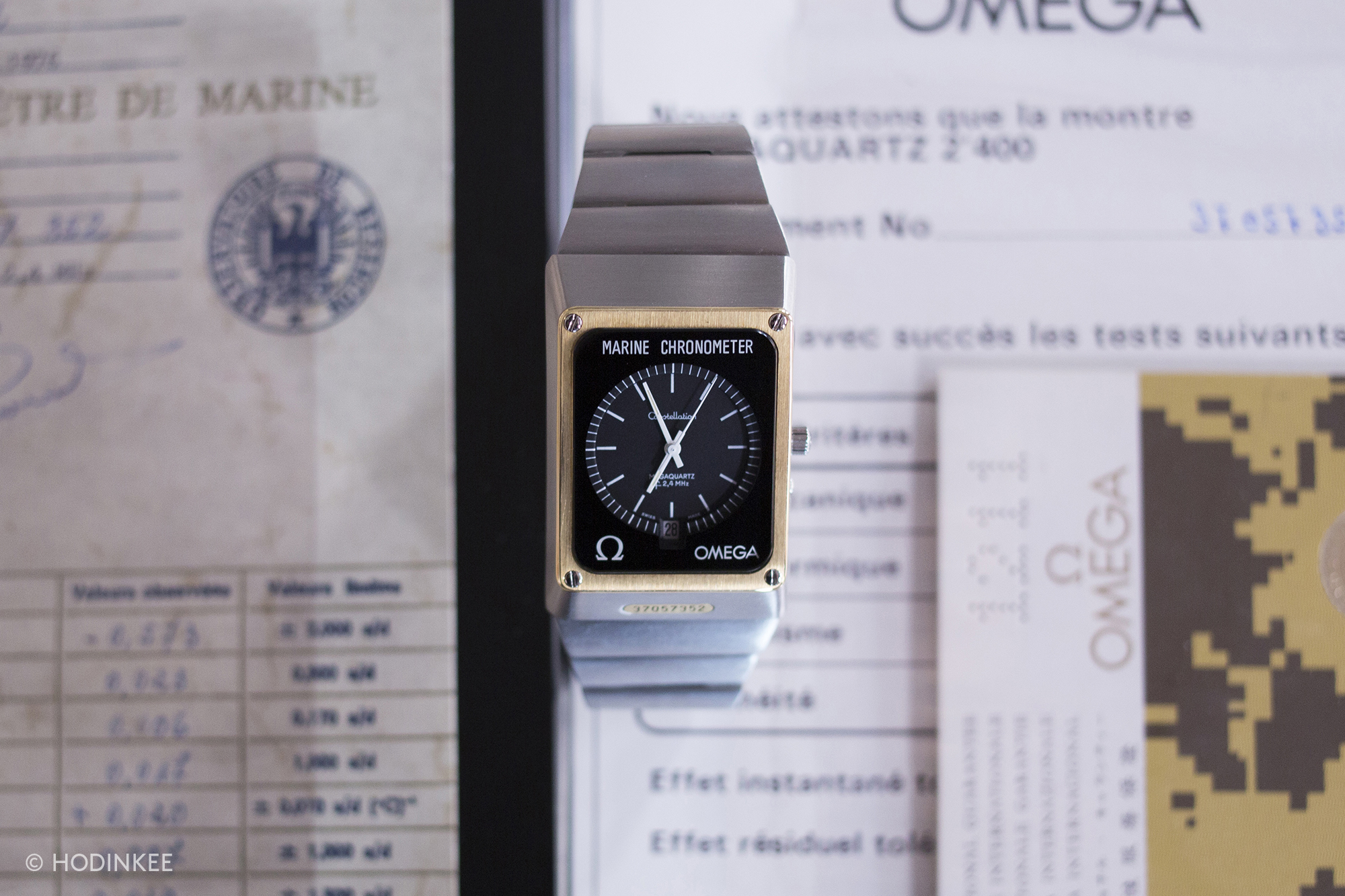 An ultra-high frequency quartz wristwatch marine chronometer, made in the mid-1970s by Omega.