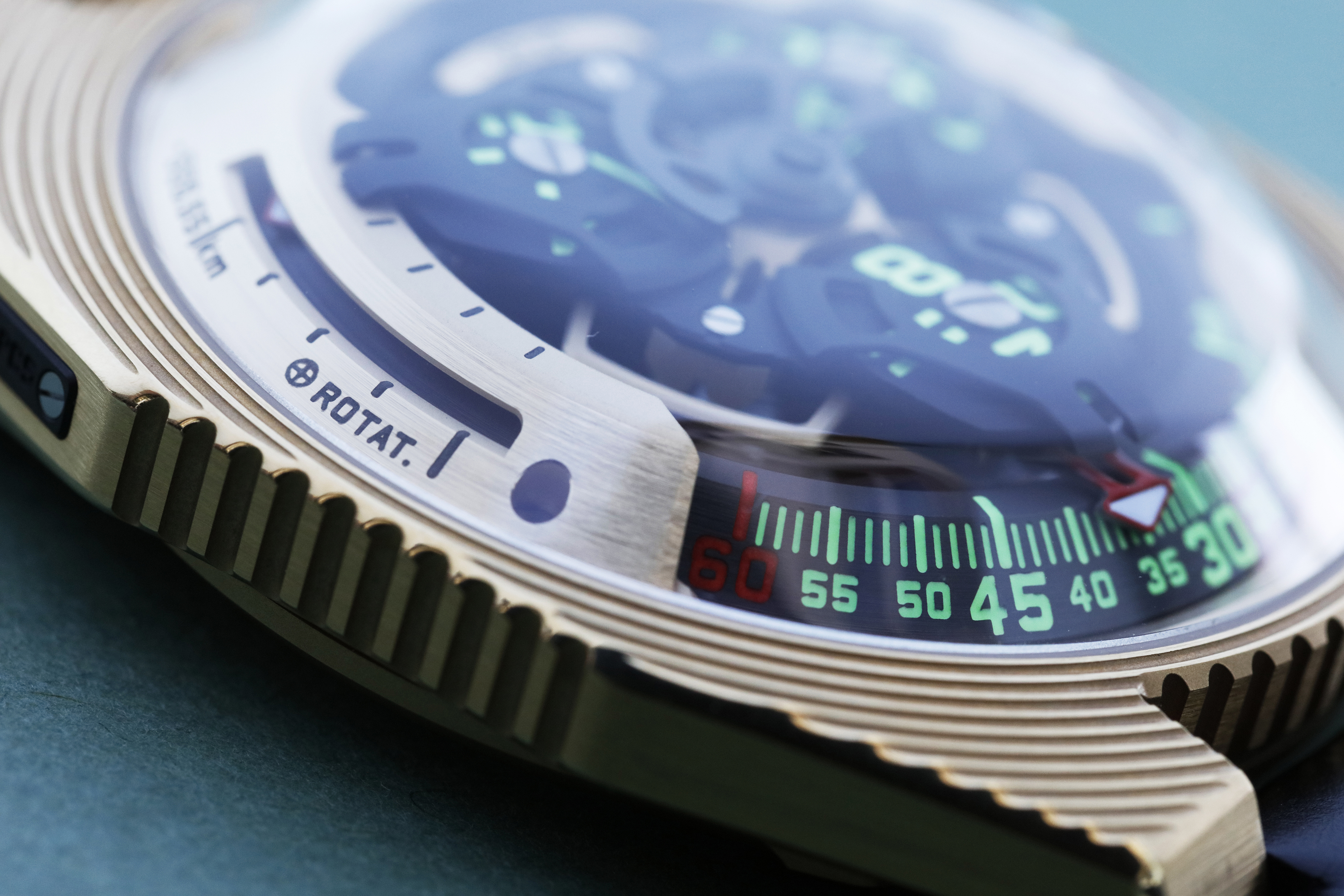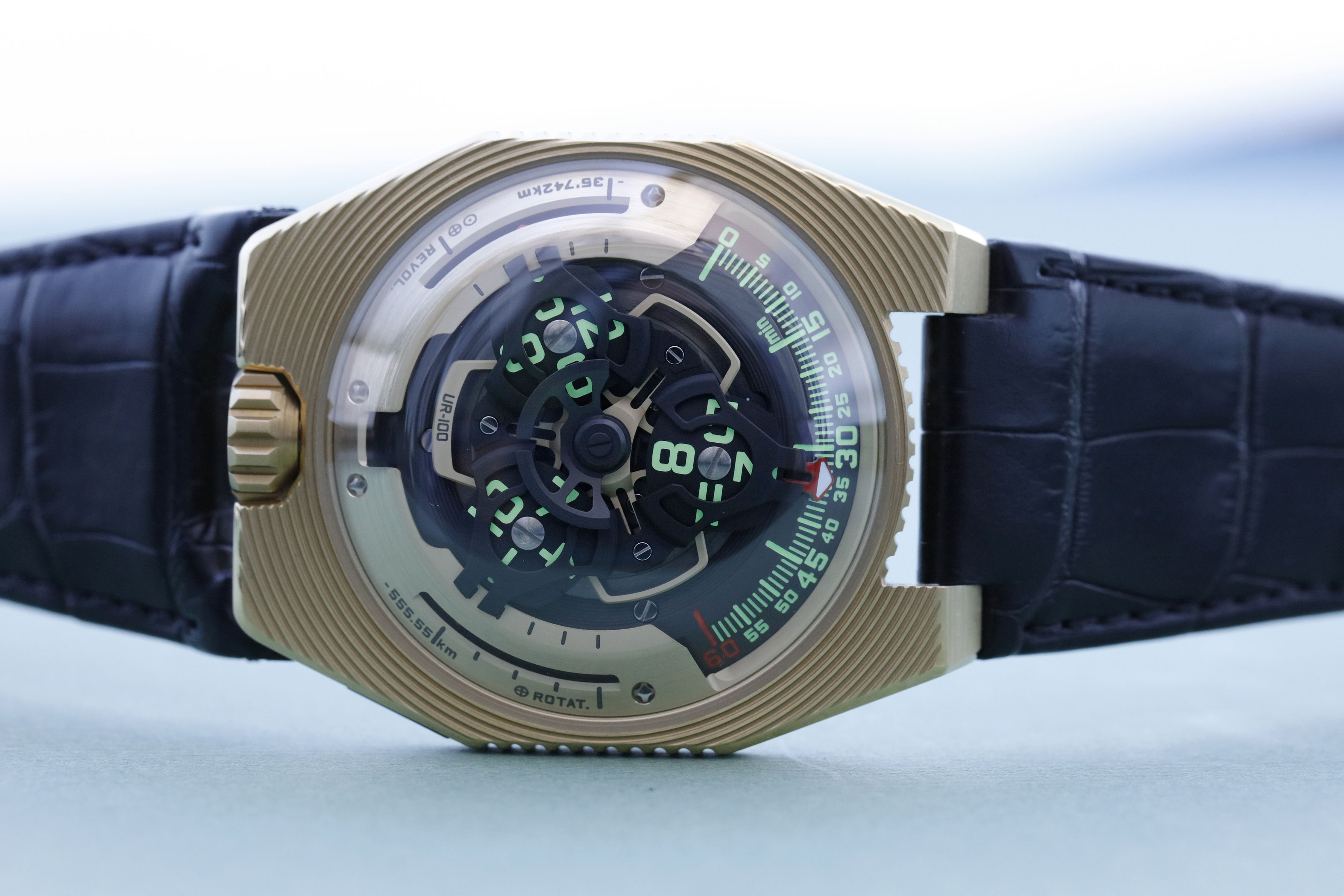 And the UR-100 Electrum isn't only about new visual flourishes. There's a timekeeping element that tracks a universal human experience on earth – traveling through space on our rotating planet. In a press release, co-founder Felix Baumgartner hints at the watch's wild inspiration, saying, "This creation was inspired by a gift from my father, Geri Baumgartner, a renowned restorer of antique clocks. It is a clock made by Gustave Sandoz for the 1893 World’s Fair. Its distinctive feature is that instead of counting off the hours, it indicates the distance travelled by the Earth at the Equator."