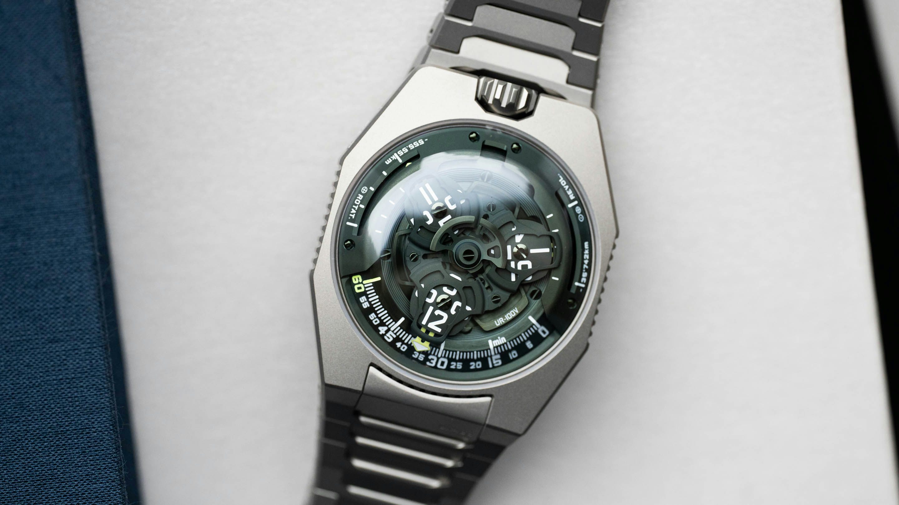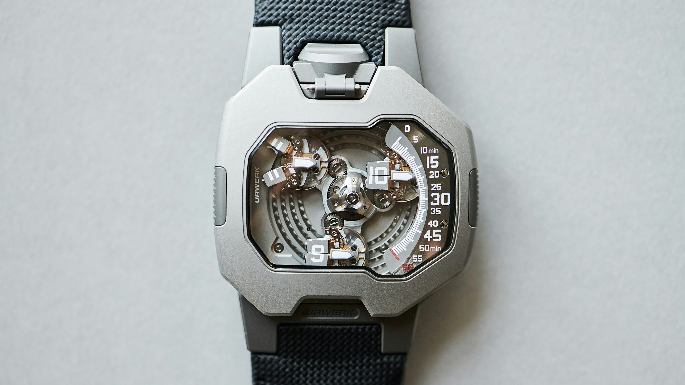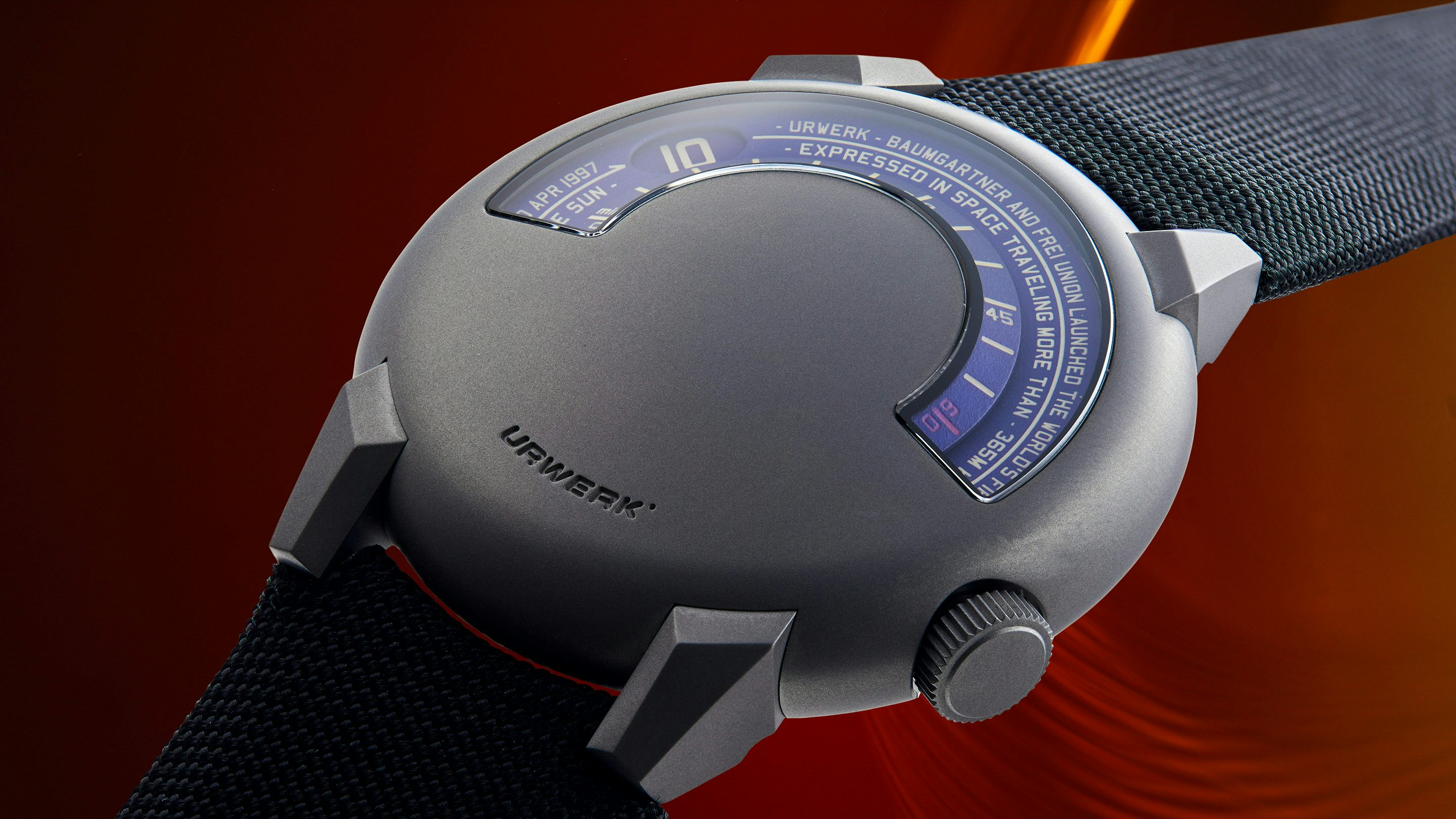 View HistoryUrwerk was founded by Felix Baumgartner and Martin Frei in 1997 and has, since its inception, focused on the wandering hours complication as the core mechanical and design feature of its watches. In addition to its instantly recognizable basic collections, Urwerk has in recent years created several unique horological experiments that focus on chronometry, including, most recently, a master-slave system in which a watch is regulated by an atomic clock.