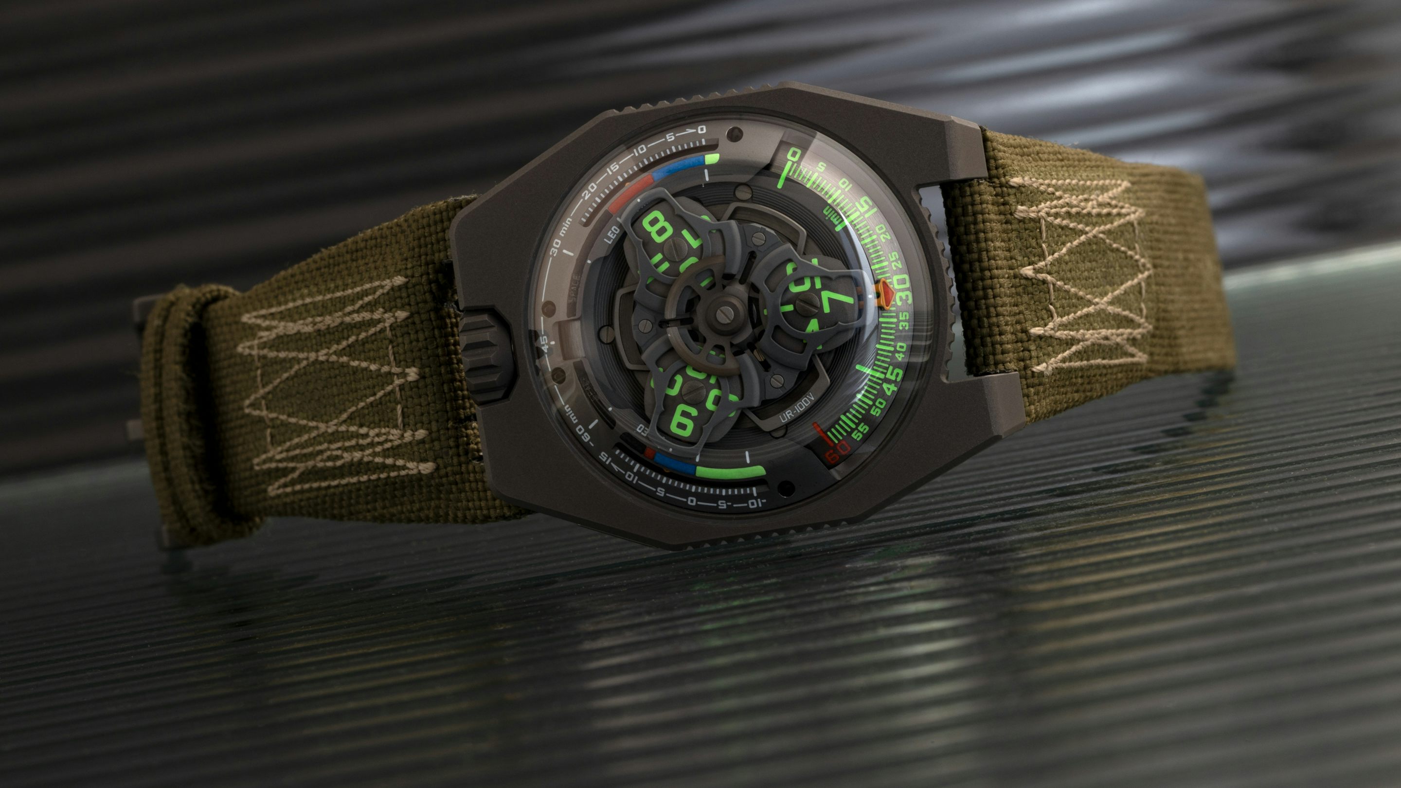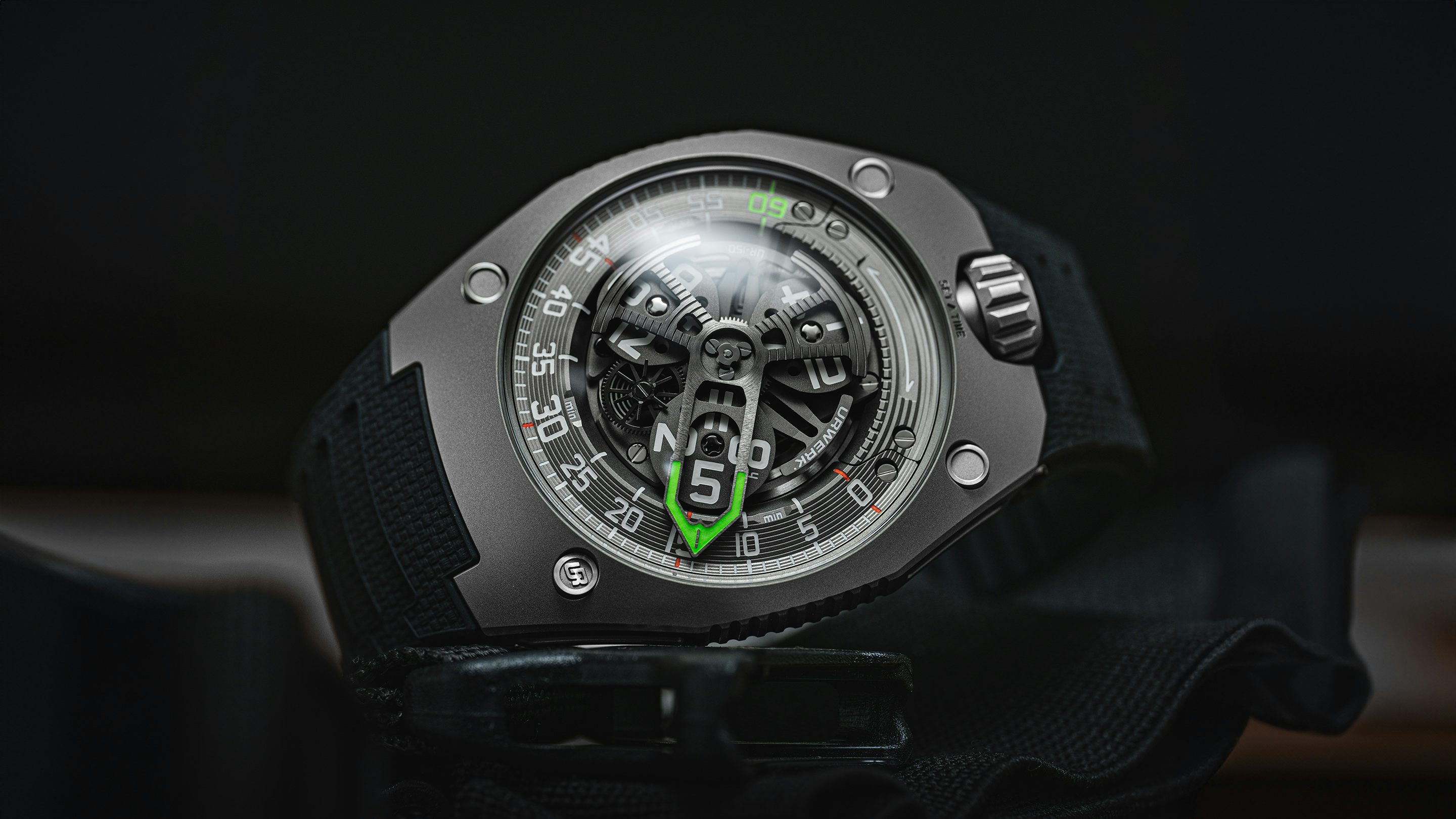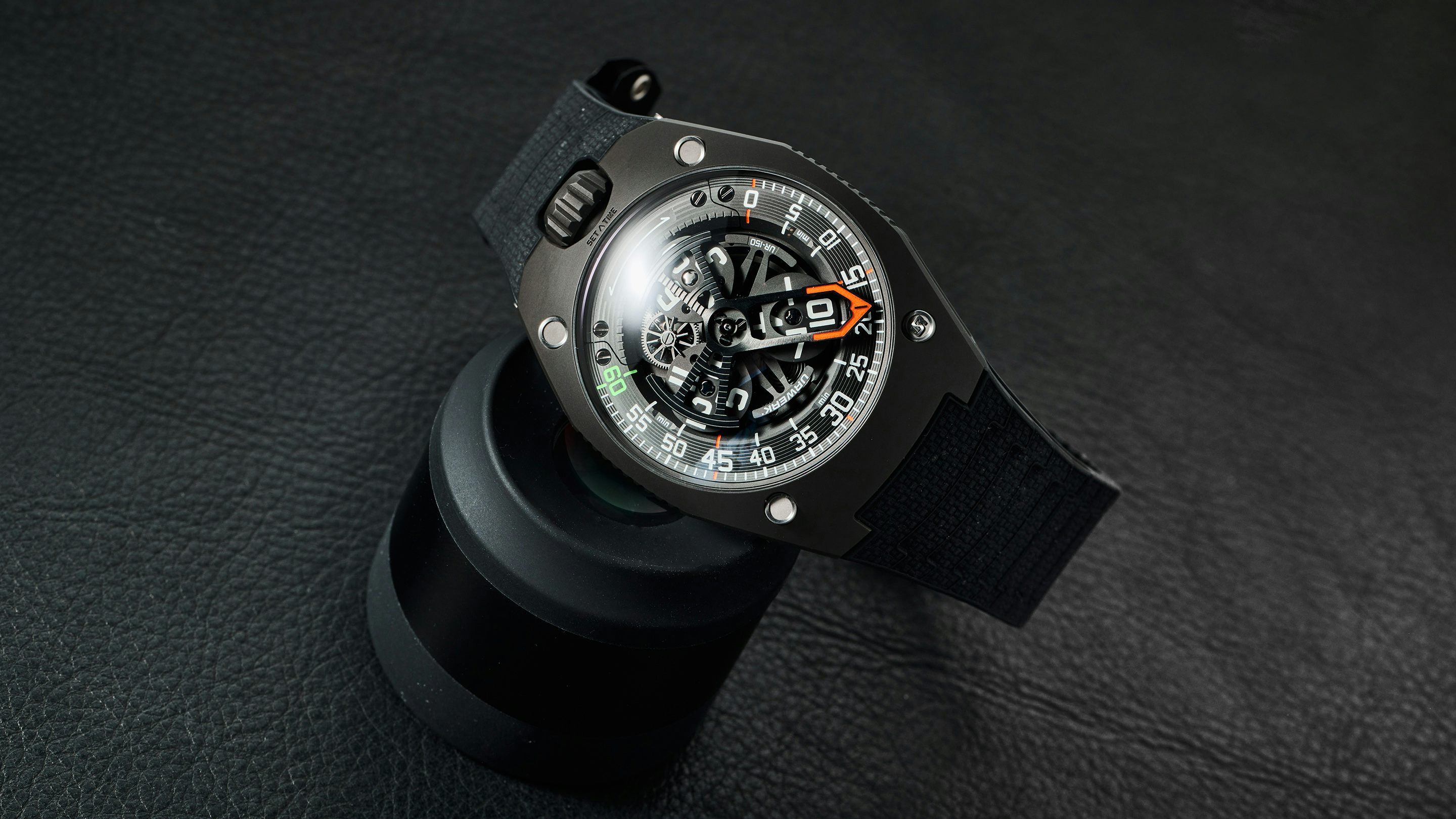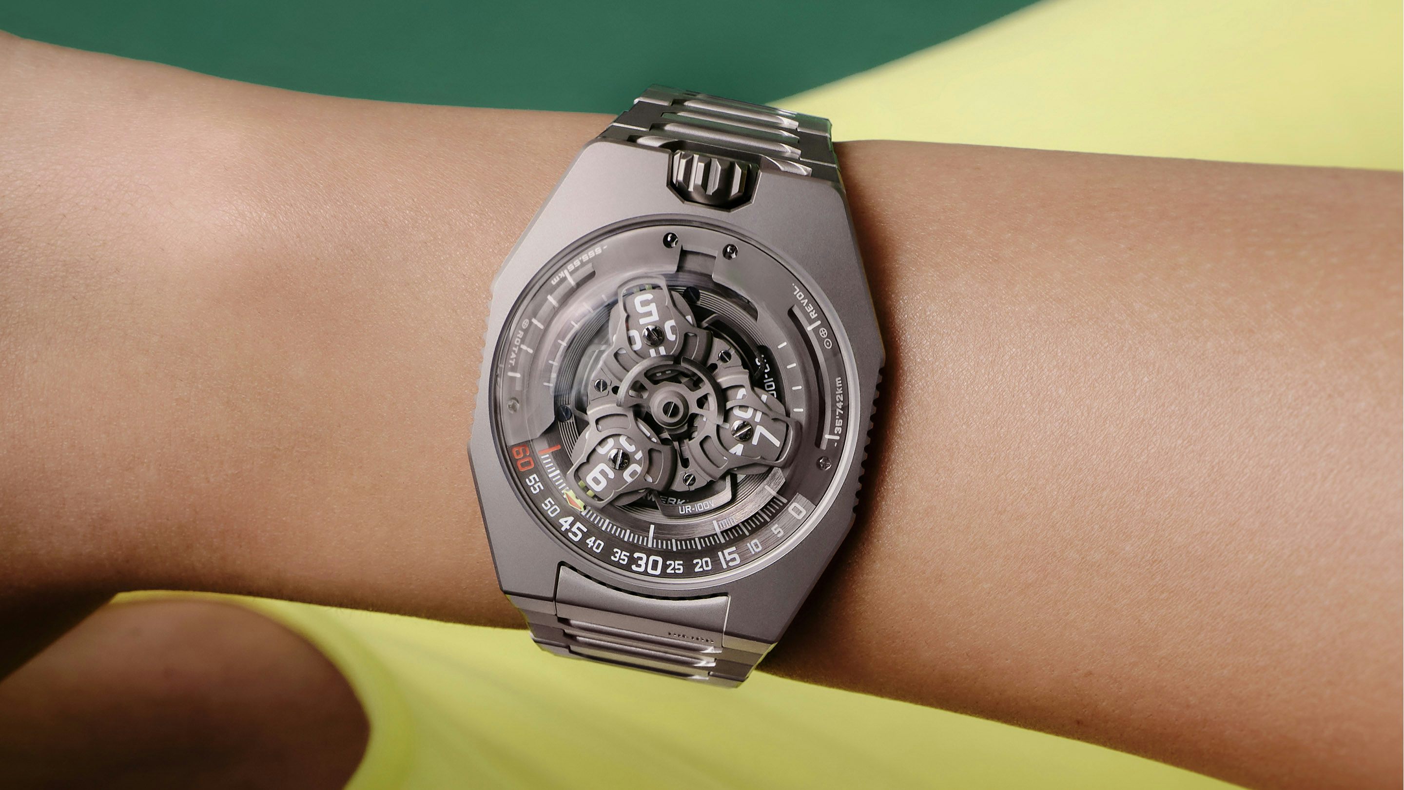 View HistoryUrwerk was founded by Felix Baumgartner and Martin Frei in 1997 and has, since its inception, focused on the wandering hours complication as the core mechanical and design feature of its watches. In addition to its instantly recognizable basic collections, Urwerk has in recent years created several unique horological experiments that focus on chronometry, including, most recently, a master-slave system in which a watch is regulated by an atomic clock.