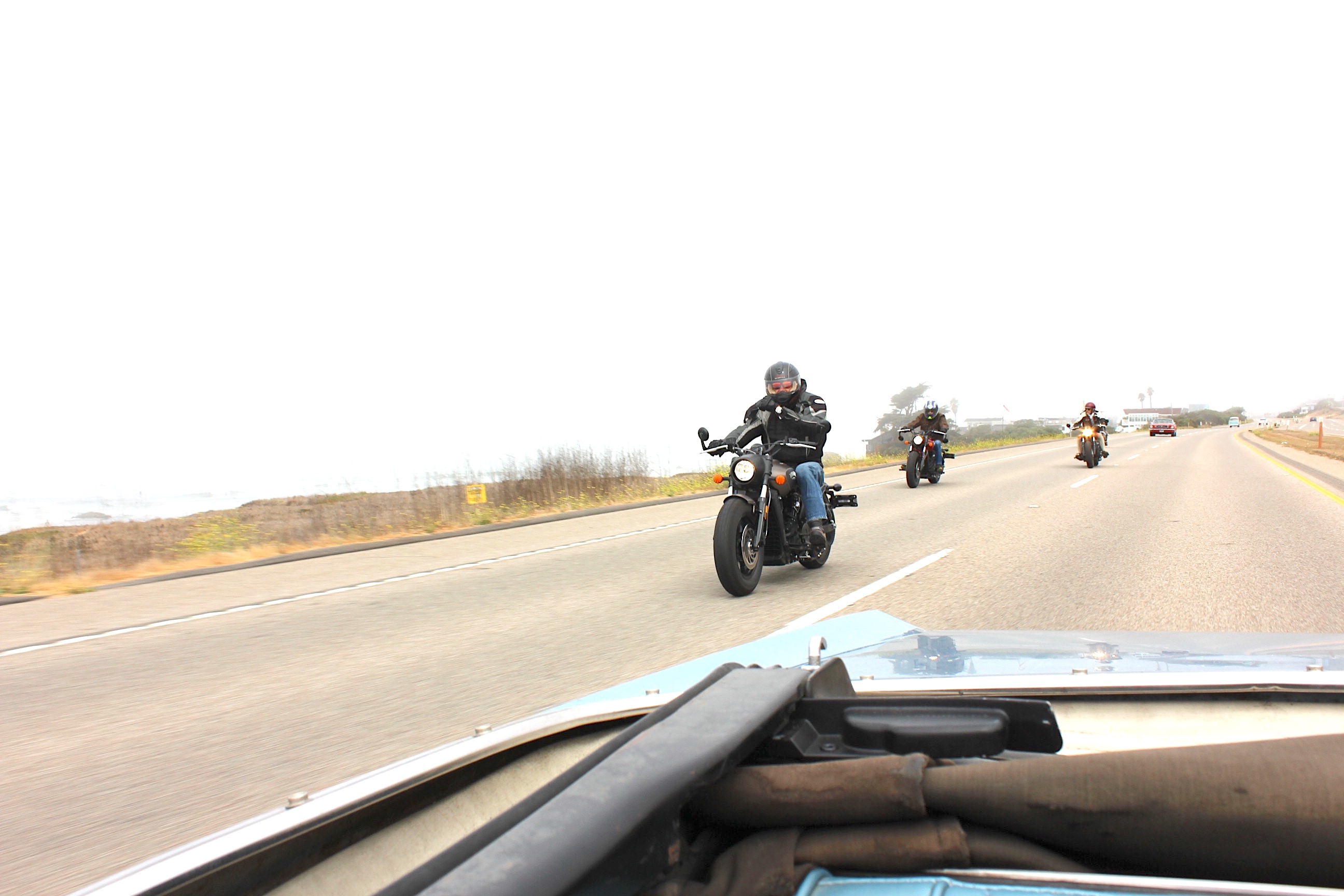 Wheels & Waves originally started in the French coastal community of Biarritz, just south of Bordeaux. As fate would have it, the California edition of this gathering happens in a place with a similar climate whose surrounding hills provide a stunning backdrop for riding. During Wheels & Waves, attendees go on organized rides through the countryside, compete in dirt track and drag races, and, of course, check out each other’s bikes. Connections are made, and projects are born. Even though I don’t ride myself, I couldn’t pass up the opportunity to pack my camera and check out this scene from the vantage point of a '67 Ford Mustang.